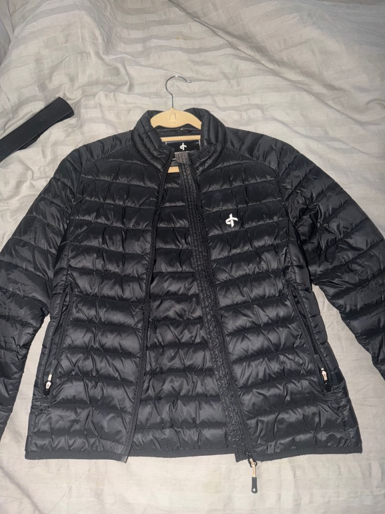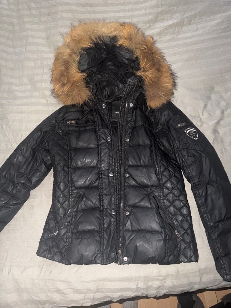 Puffer style jacket with fleece lined detachable hood. Rubber motif on sleeve. Armpit to armpit 25". Size XL but would fit a UK size 16-18. Buyer to collect from Hackbridge area. Cash only on collection please.