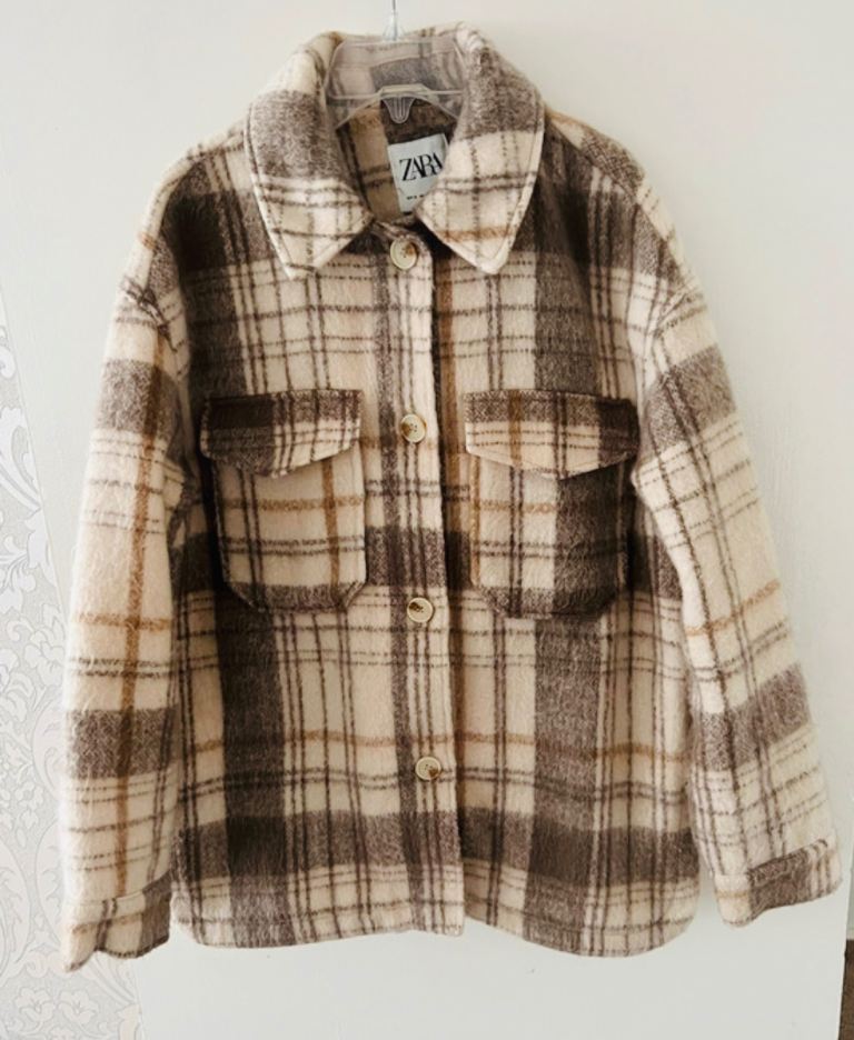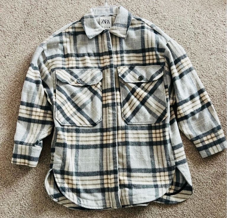 Zara Checked Plaid Oversized Jacket Shacket Overshirt Size XS