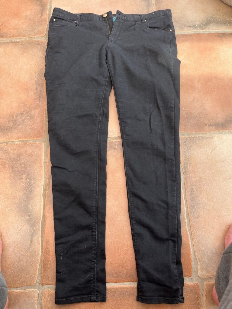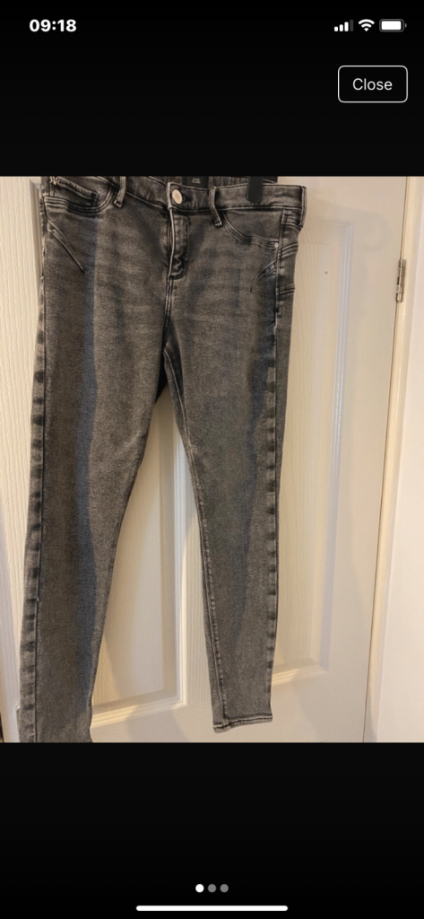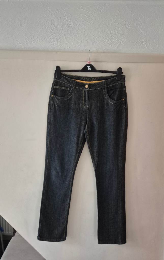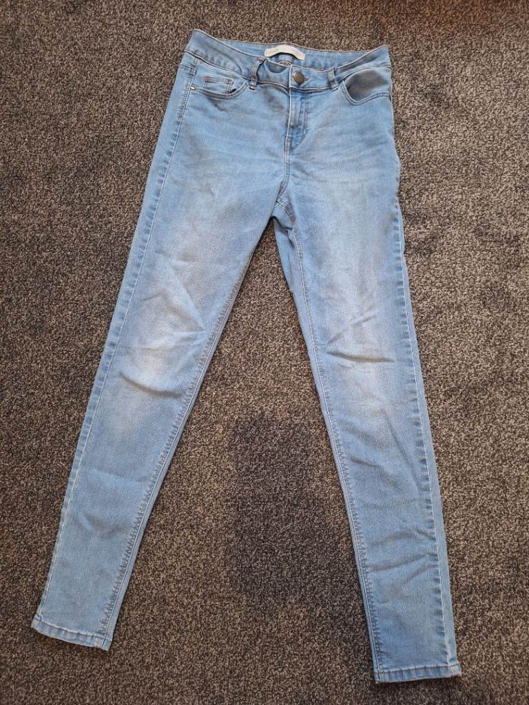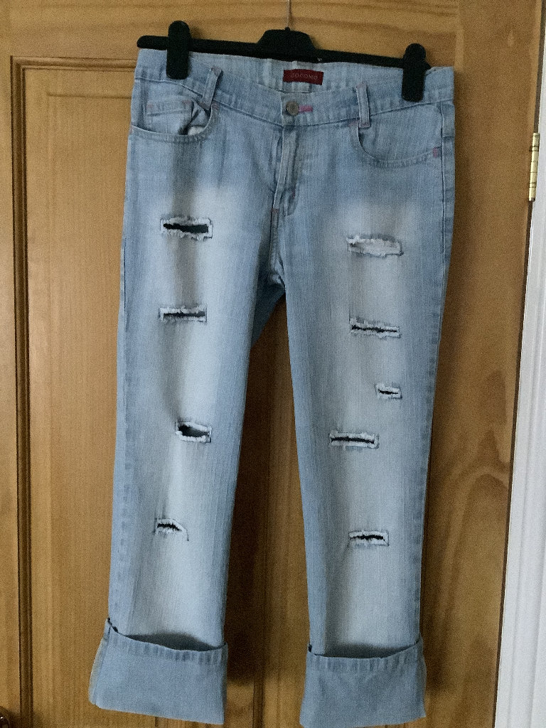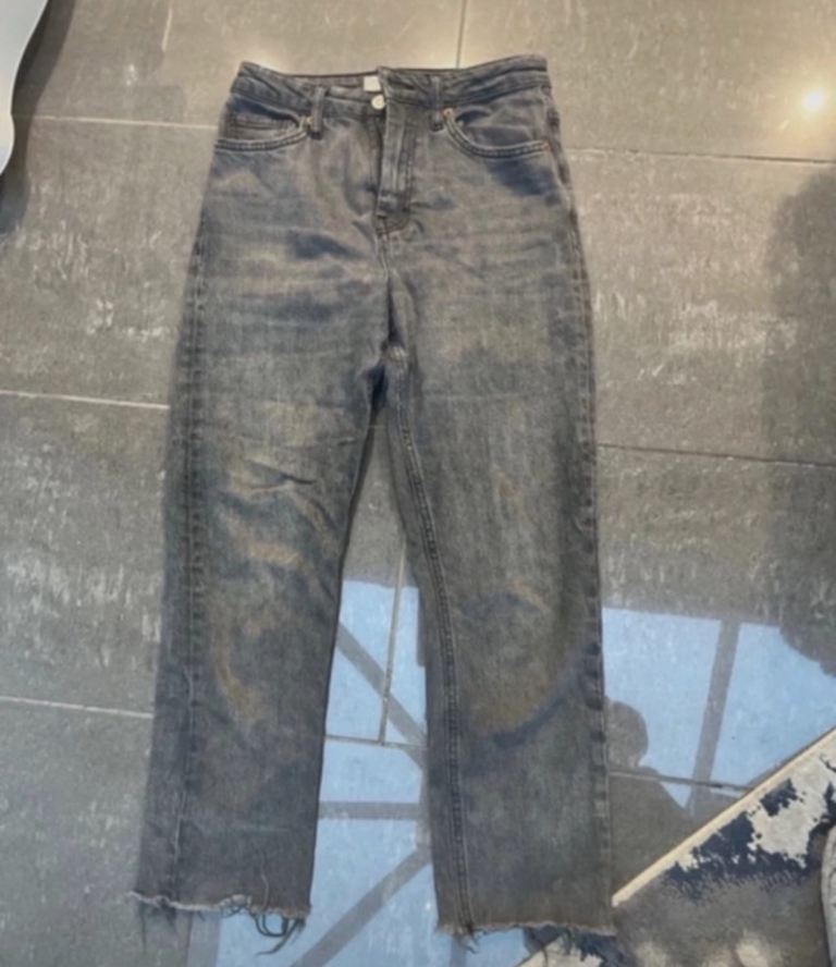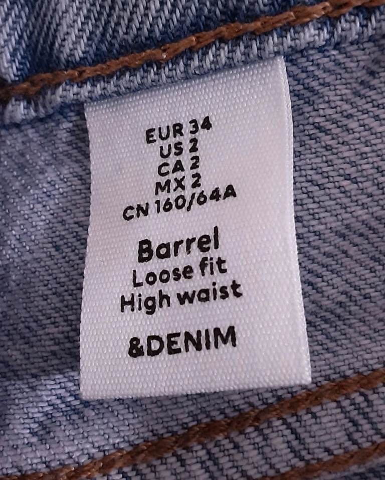 These &Denim vintage women's jeans in size Eur 34 are made from 100% cotton denim with a high waist and loose fit. The barrel style features a zip closure and button accents, with a 5-pocket design and a light wash. The jeans are in a classic blue colour and are machine washable. With a regular fit and a size waist of 28-30", these jeans are perfect for year-round wear and add a touch of designer style to any wardrobe.