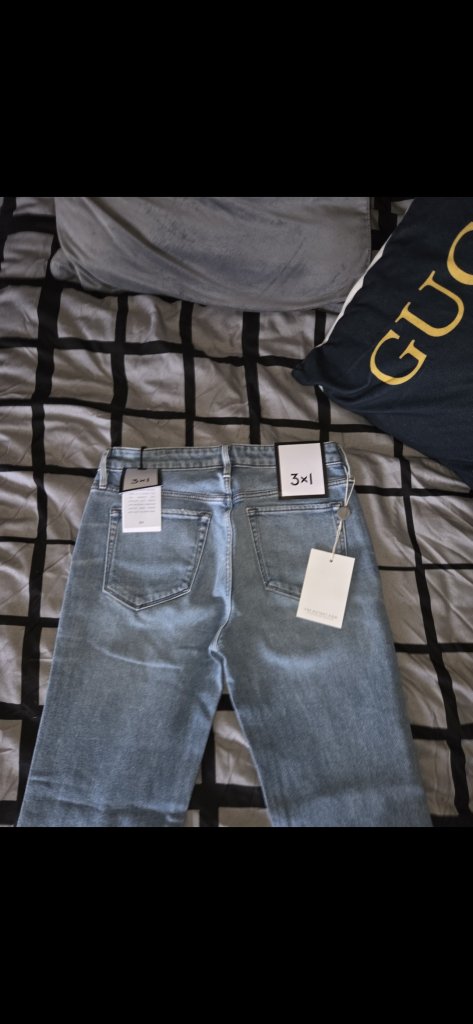 Authentic 3x1 NYC designer jeans in a light blue wash.