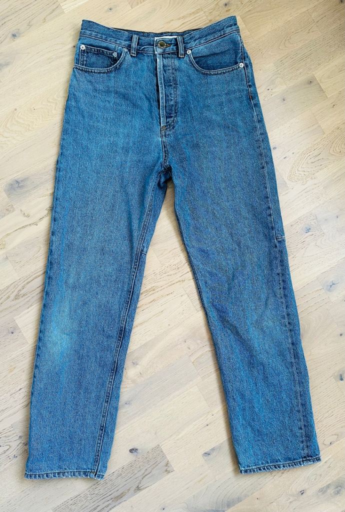These authentic blue Mom jeans are iconic with their high waisted cut, slim through the hips with a tapered leg and crafted using authentic rigid cloth.