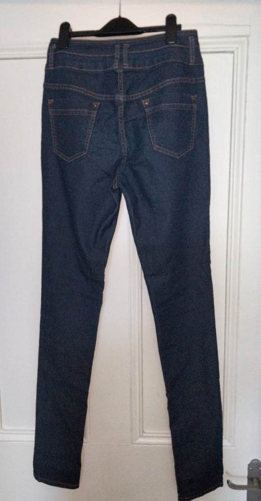 New look skinny jeans. High waisted. Dark blue. Ladies size 10 TALL length. Worn once