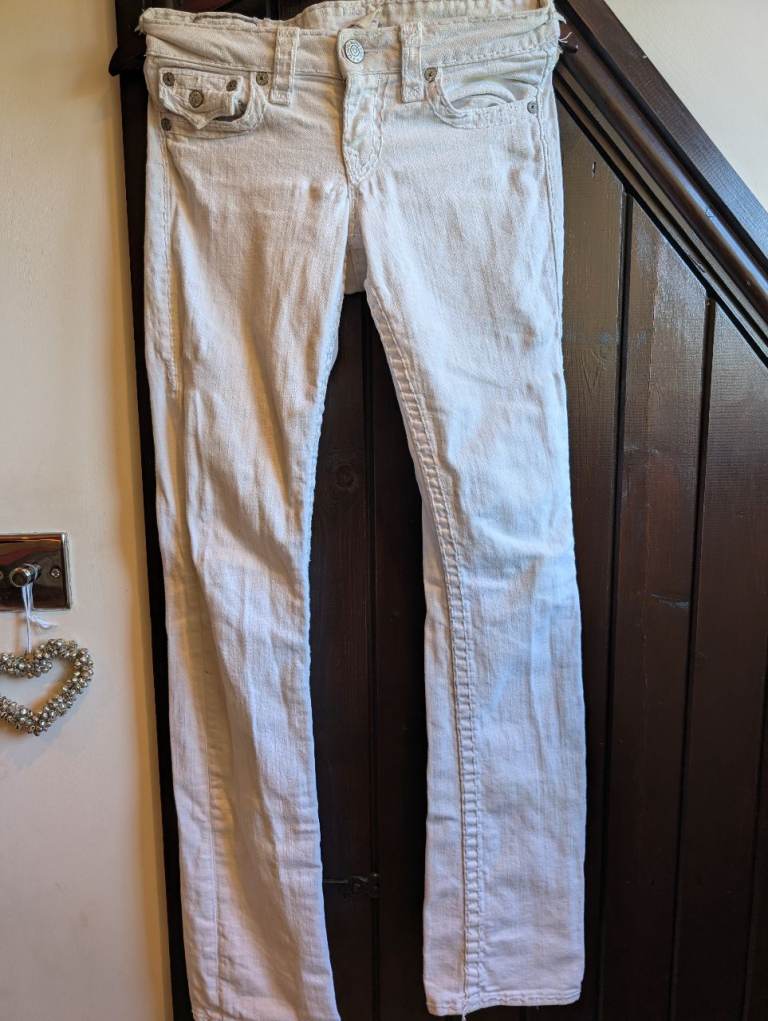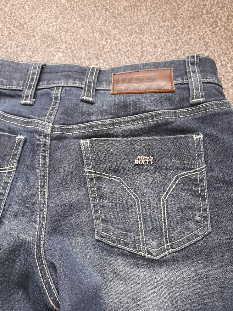 15+ years old. TR straight leg which has a slight fair. Light wear with naturally distressed look. Worn by my wife & daughter briefly.