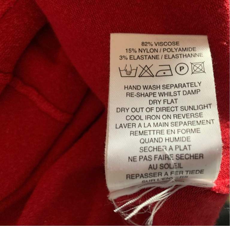 82% VISCOSE 15% NYLON 3% ELASTENE