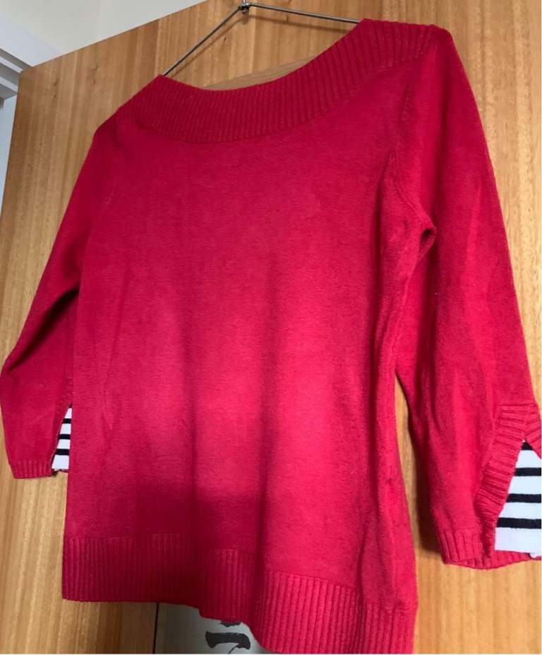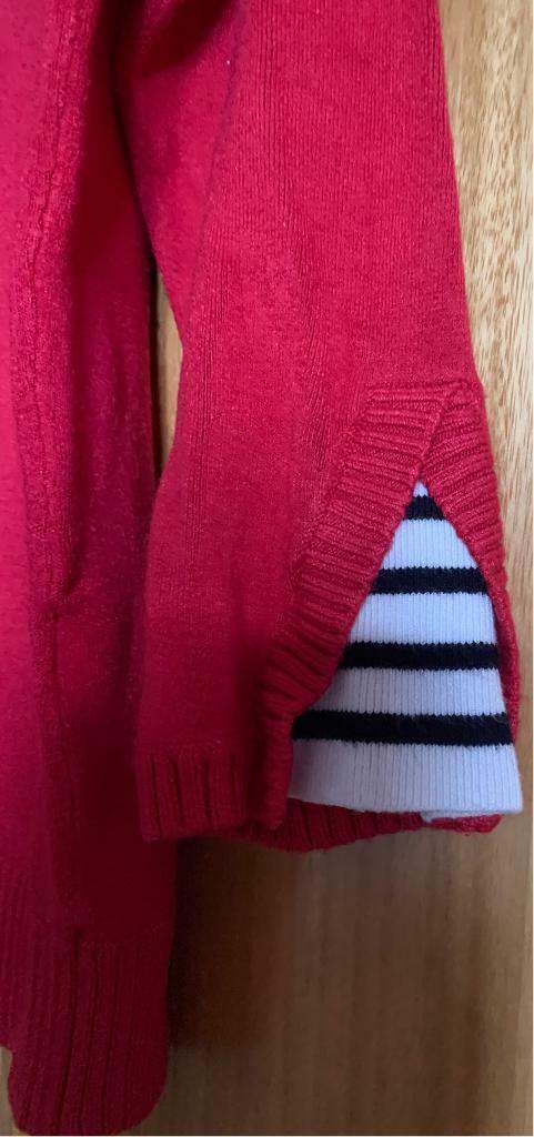 3/4 LENGTH SLEEVES WITH STRIPED SLEEVES AND BUTTONS ON SHOULDERS