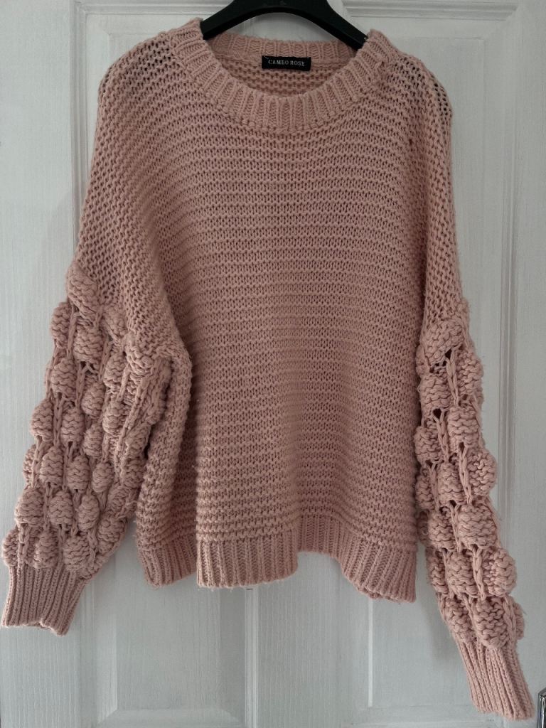 95%new Soft pink oversized knit sweater with puffy sleeves
