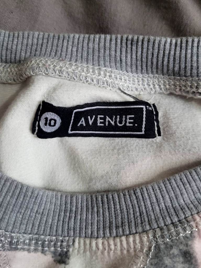 Brighten up your casual style with this charming Avenue. crew neck jumper. This preloved piece features a delightful all-over pink, white, and grey heart pattern with comfortable ribbed cuffs and hem.