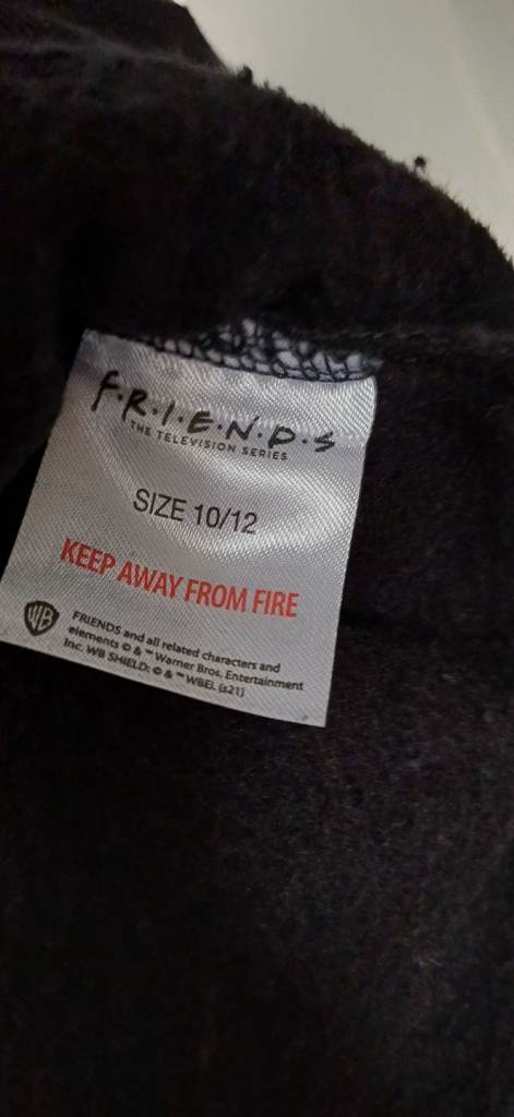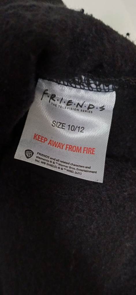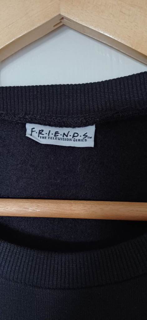 This product is a vintage FRIENDS jumper from Warner Bros Studios, featuring a round neck and a pullover style. The black jumper is in size 10 and is perfect for casual occasions during the winter season. With the iconic character family of Friends, this jumper is a stylish addition to any woman's wardrobe who is a fan of the popular TV show.