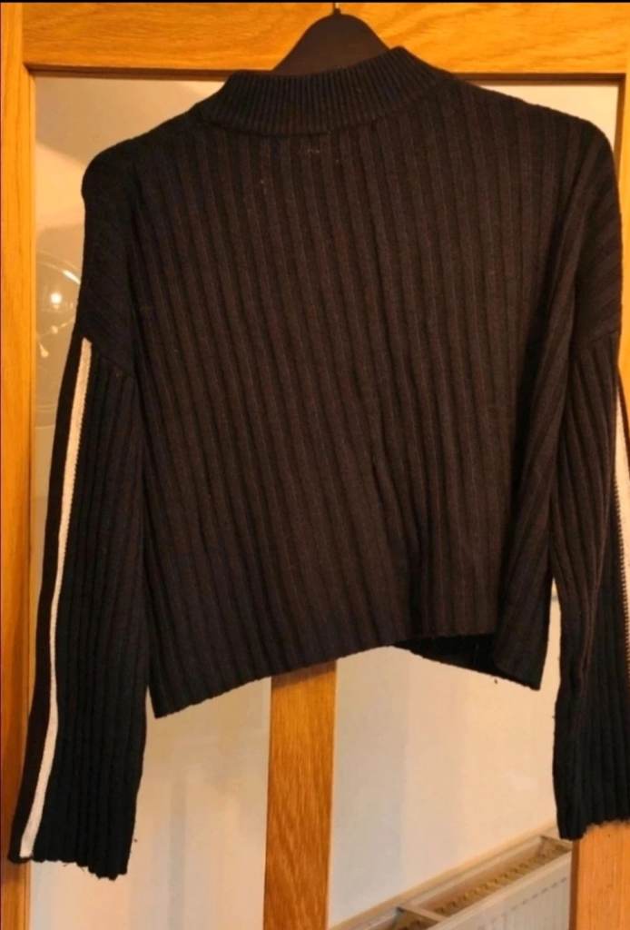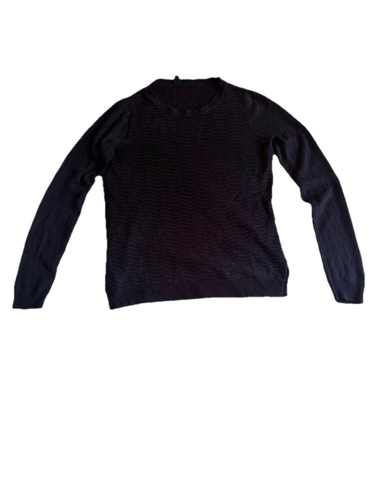 Vintage Black Zig Zag Striped Jumper Sweater With Slit Sides Size Small