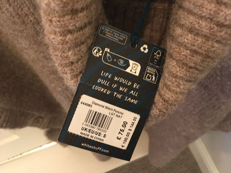 White Stuff Poncho new with tag. Size small would fit 12/14. Loose fitting.