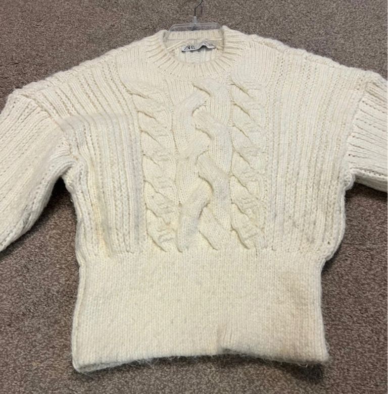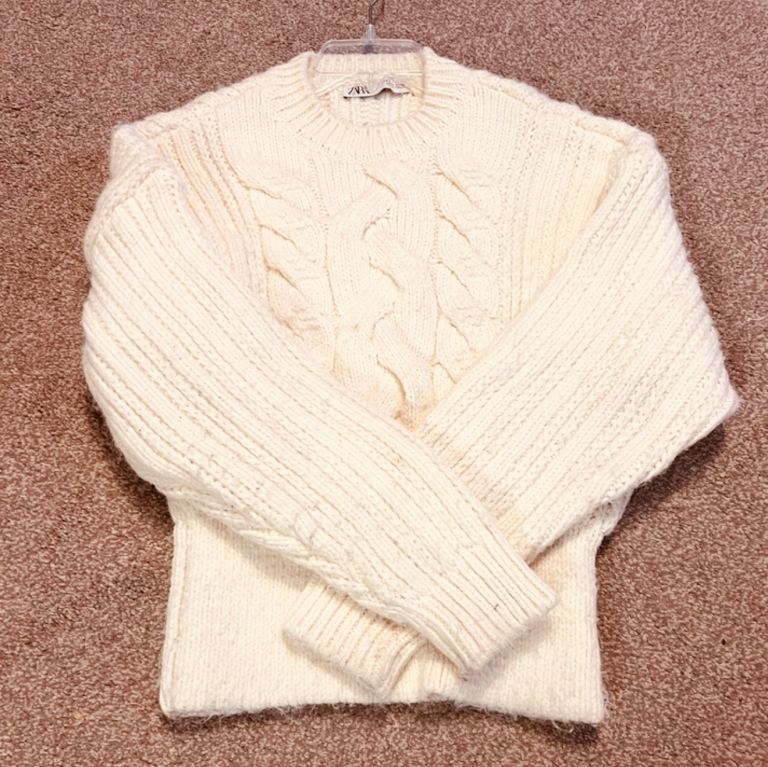 Hi and welcome to this beautiful looking style ladies Zara Ecru Cable Knit Cropped Jumper Size Small in very good condition thanks