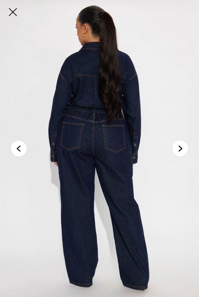 For sale: brand new, never worn blue jean jumpsuit. Unfortunately, it's a bit too long for me, and I'd rather not alter it. Looking for someone who'll fit it perfectly! Size 16(XL)