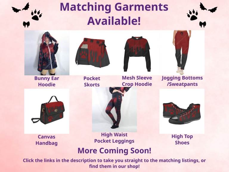 Featuring an overall drip design, bows (print) down the sides of the legs and of course, pockets! Waistband is plain black but can be changed upon request.