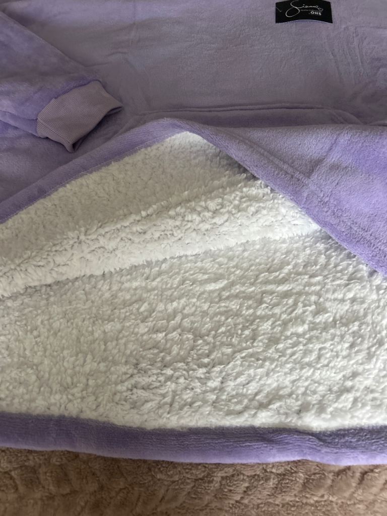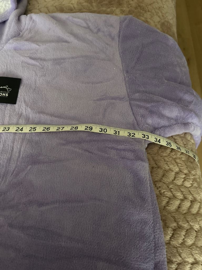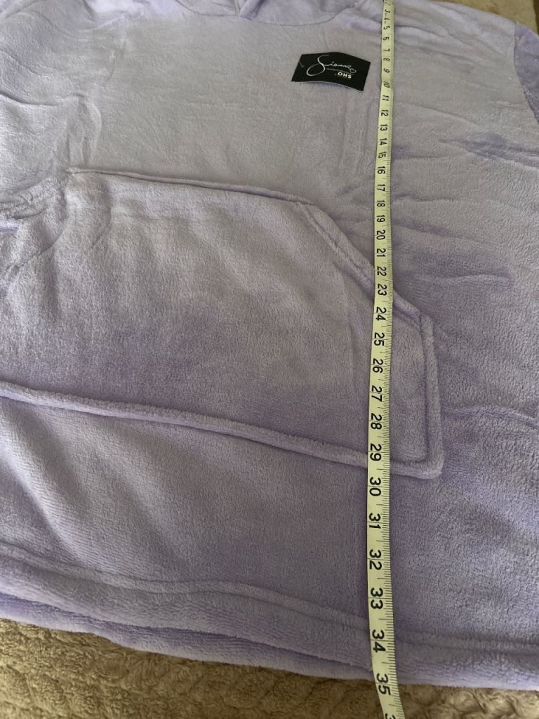 Very large Hoodie from OHS ( online home shop) . Classed as size XL 16- 18 but fit better for larger person as hangs off me (16-18 uk size ) . More uk 20 -24 size . Actually think they sent the wrong size as does not show a size in it. ( see label) . Unfortunately I did not check it . Warm and cosy lined in a lilac colour -would Make a nice present this winter ! - bargain at £8