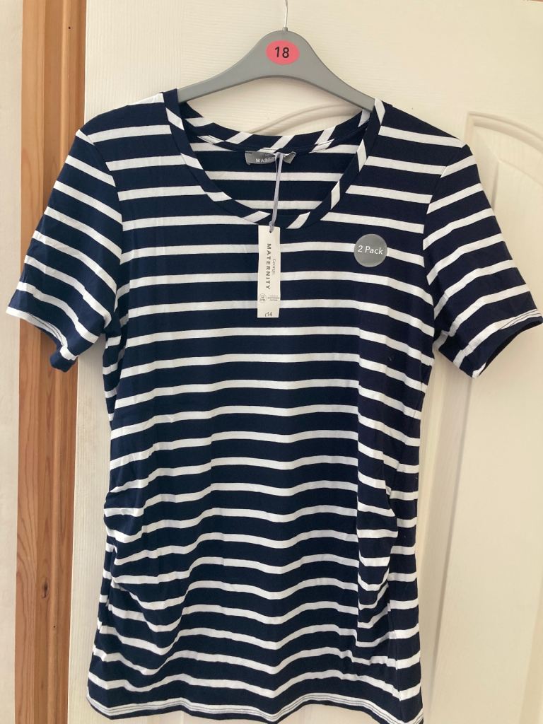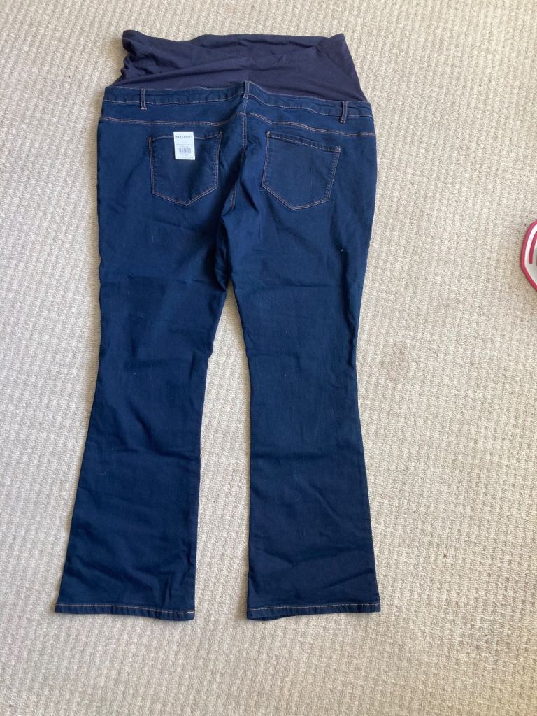 All unworn - new with tags. 3 Asda George Maternity Tops - size 18 1 pair of Dorothy Perkins Bootcut Indigo Jeans - size 20. Also happy to include for free a H&M Bump Band for wearing with/under clothes - one size fits all. Worn but in very good condition (see pics).