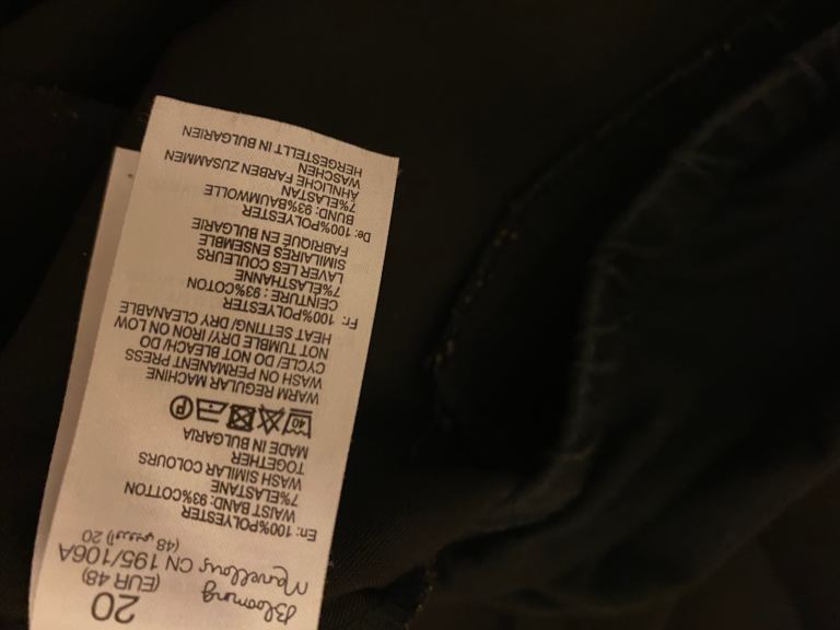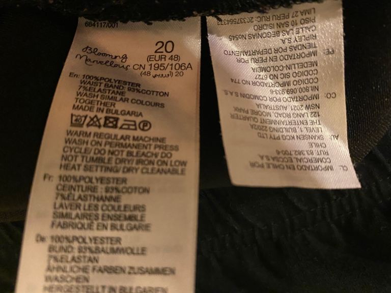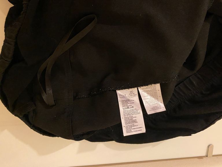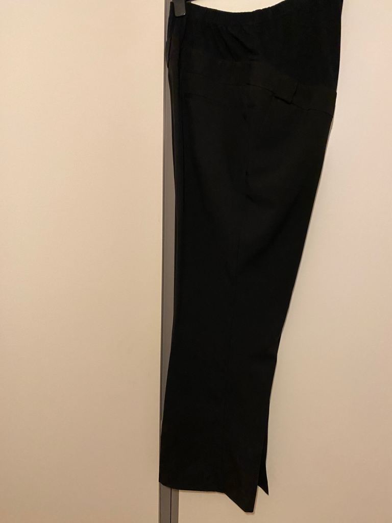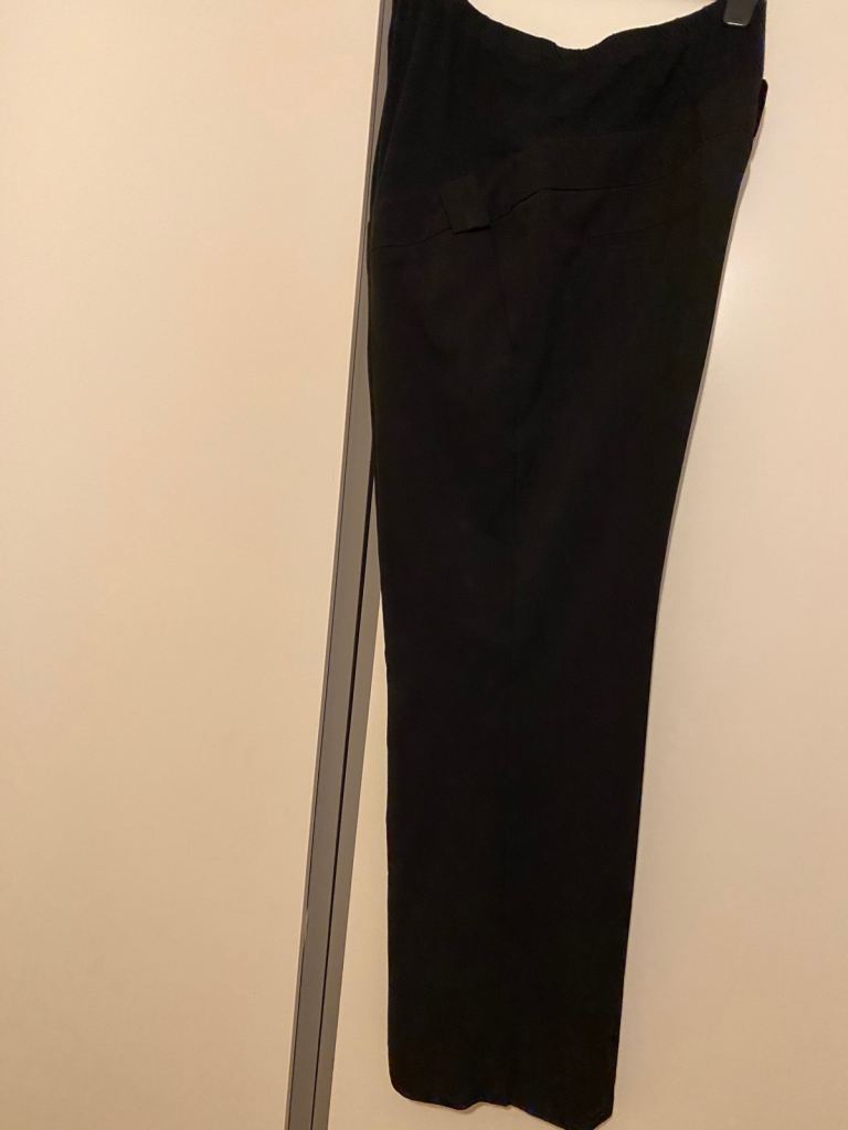 Black maternity trousers for size 20. The brand is Blooming Marvellous. Everything is shown in the pictures uploaded. It costs for five pounds.