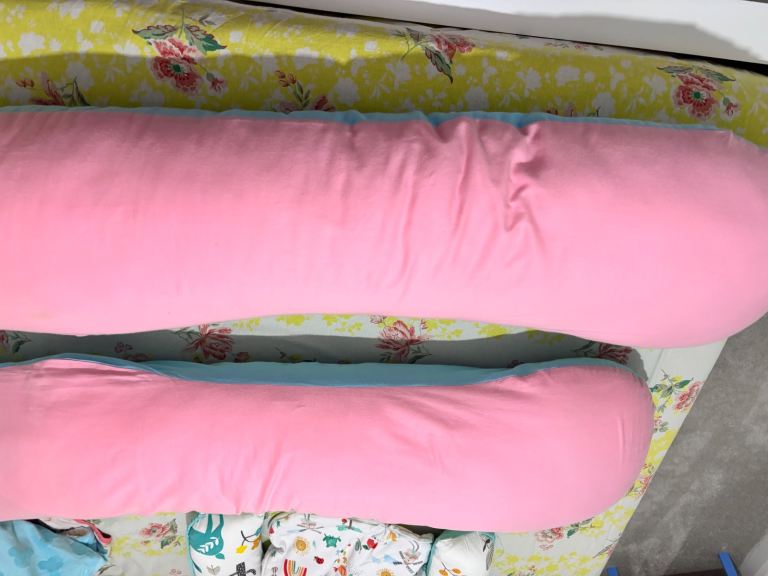 Machine washable, full body support for back, legs, belly, and hips – ideal for pregnant women. (Color: Pink and Blue)