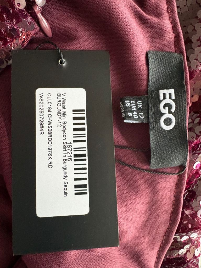 EGO burgundy sequin bodycon skirt. Brand new with labels still attached. Paid £17.