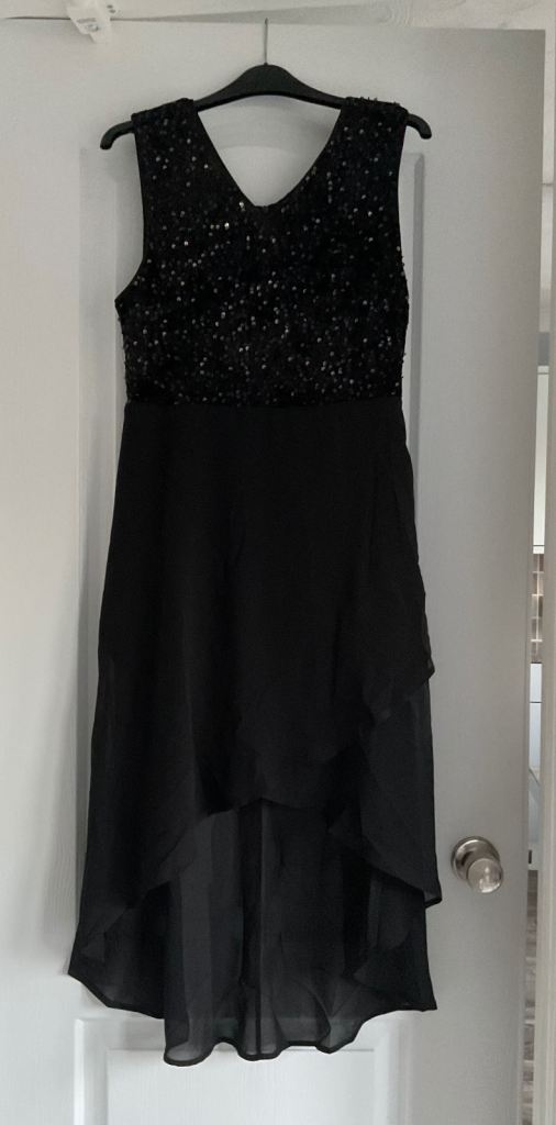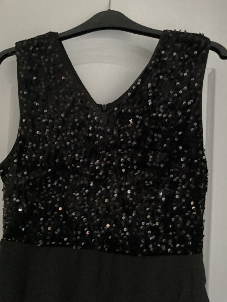 BRAND NEW - V Neck Black Sparkling Sequin Sleeveless Evening Dress