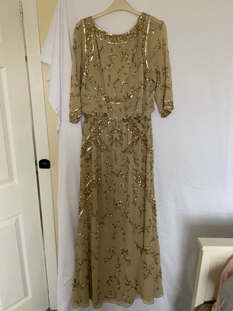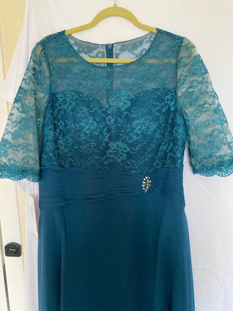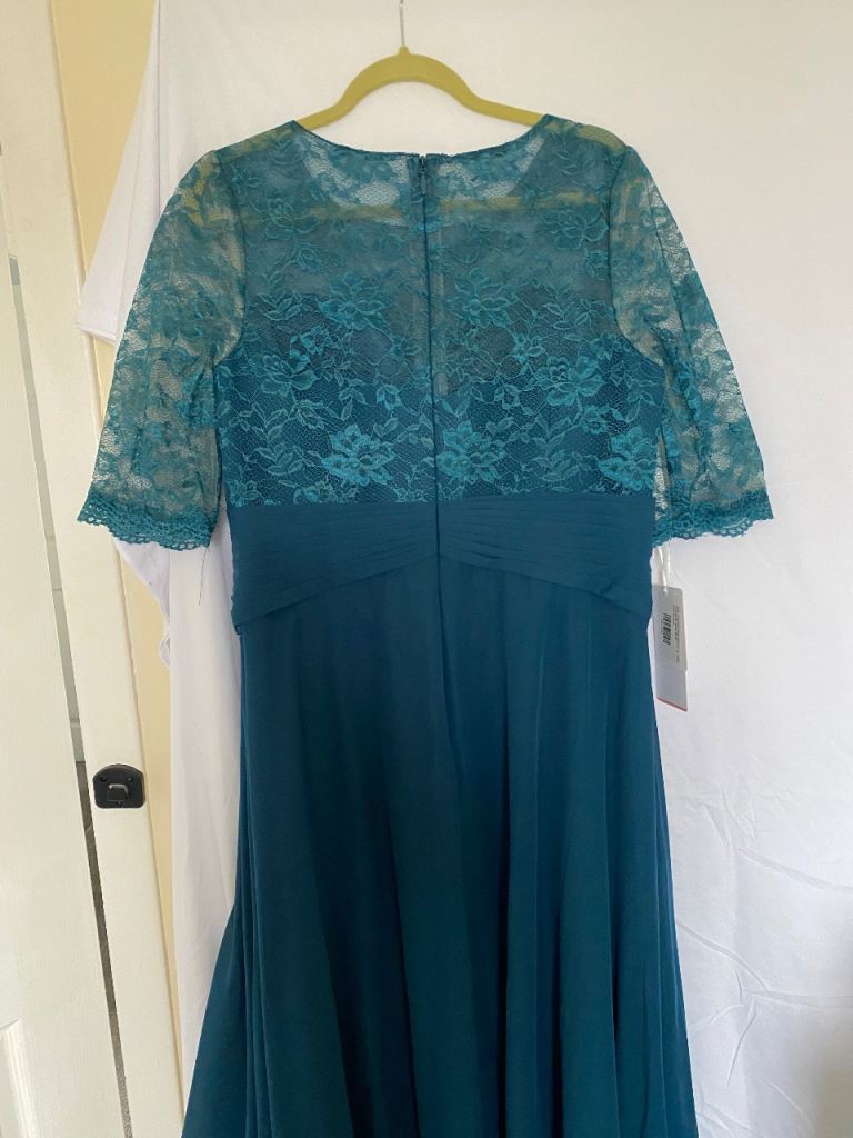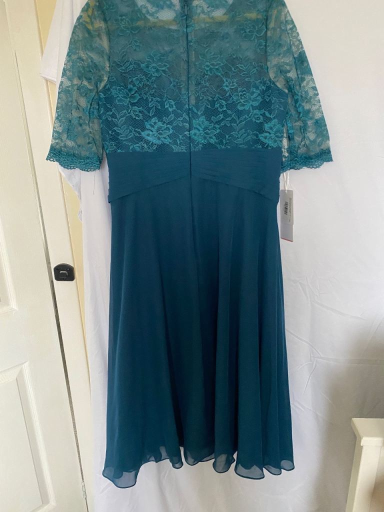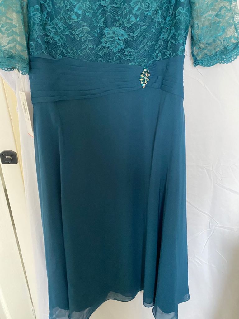 JJ house dress says it’s an 18 but I would say it more a size 16 brand new with tags still attached I would say the colour is more of a green- blue like a teal