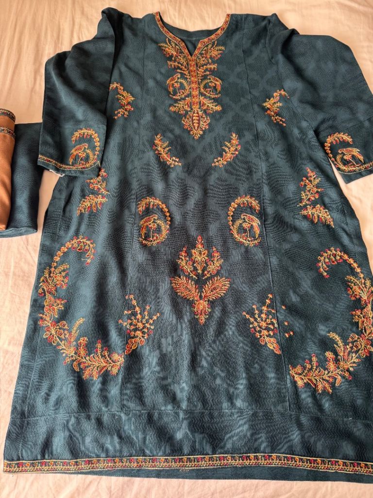 Embroidered jacquard kadder salwaar kameez suit by jazmin.
