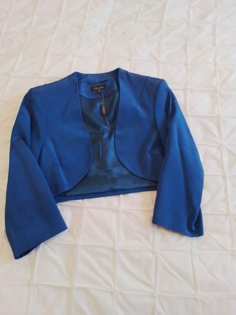 Blue Alexon sleeveless dress and short jacket. Size 14. Ideal wedding/special occasion outfit. Never been worn