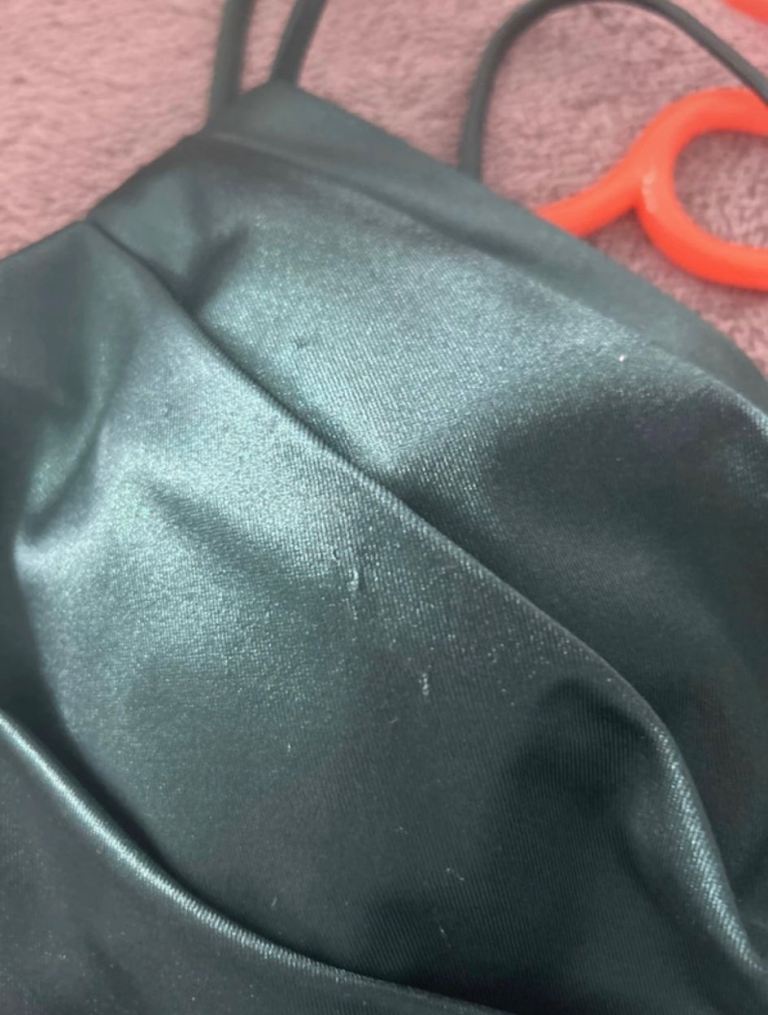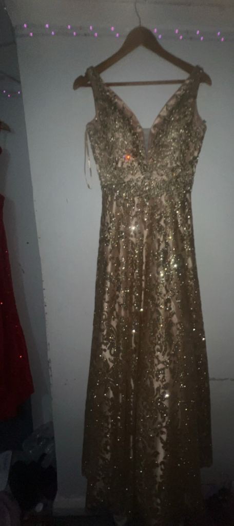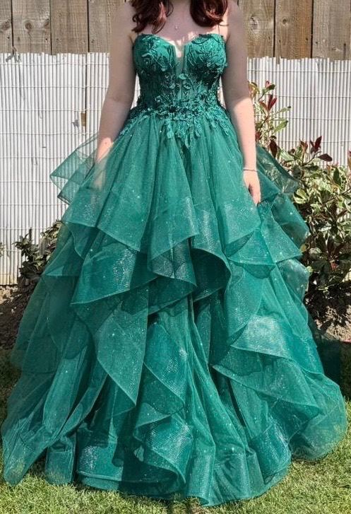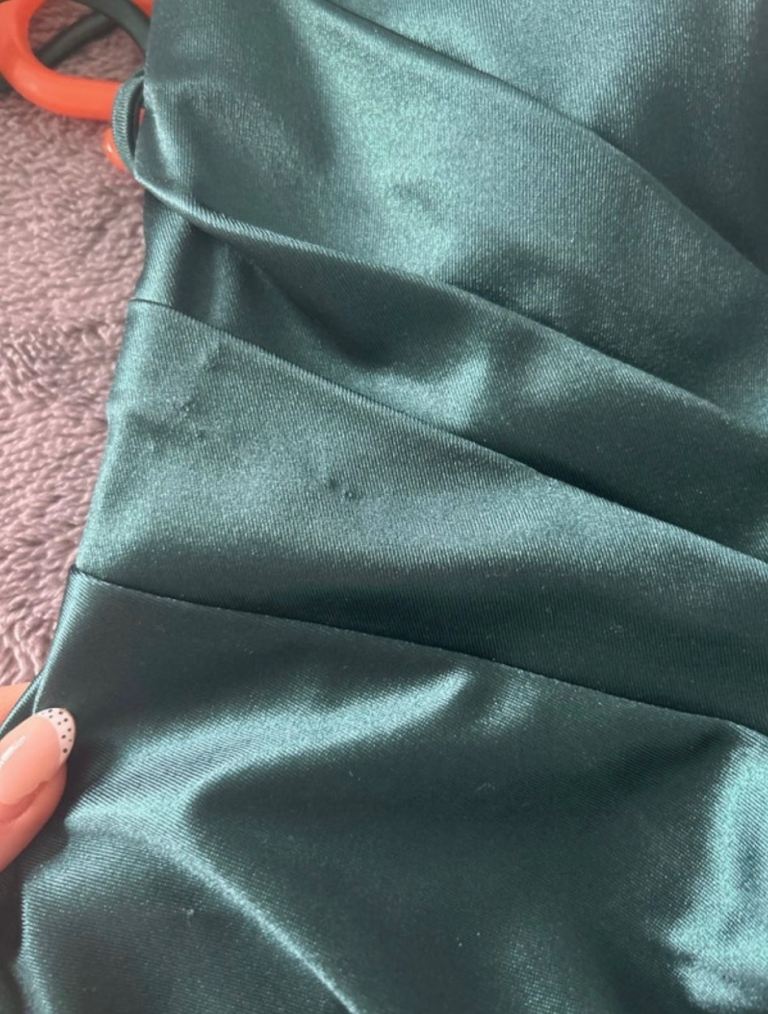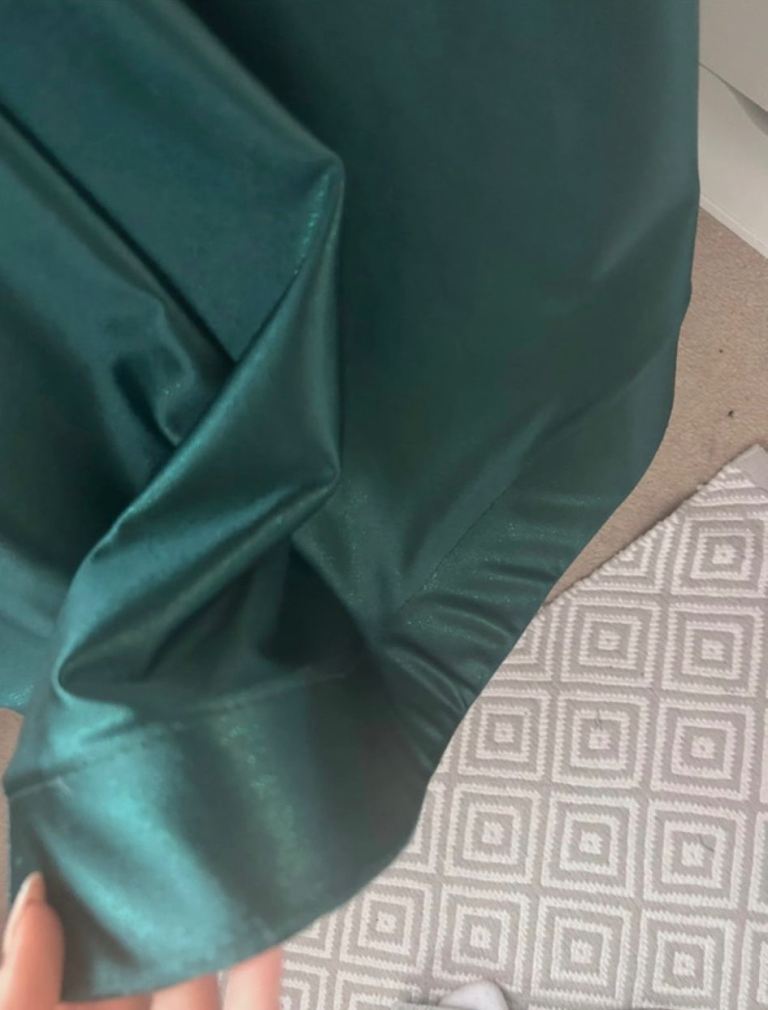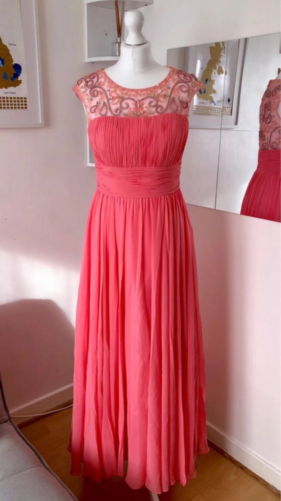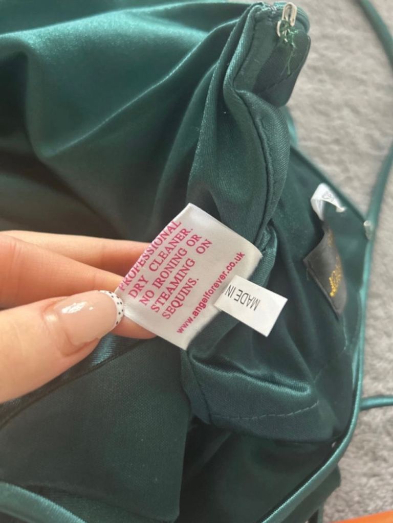 Angel forever, size 3xs. deep sea green with shimmer. Strap shoulder dress with tie back. Worn once . Excellent condition. Uk size 4/6 . Smoke free household. Comes with protective cover and shoulder cover.
