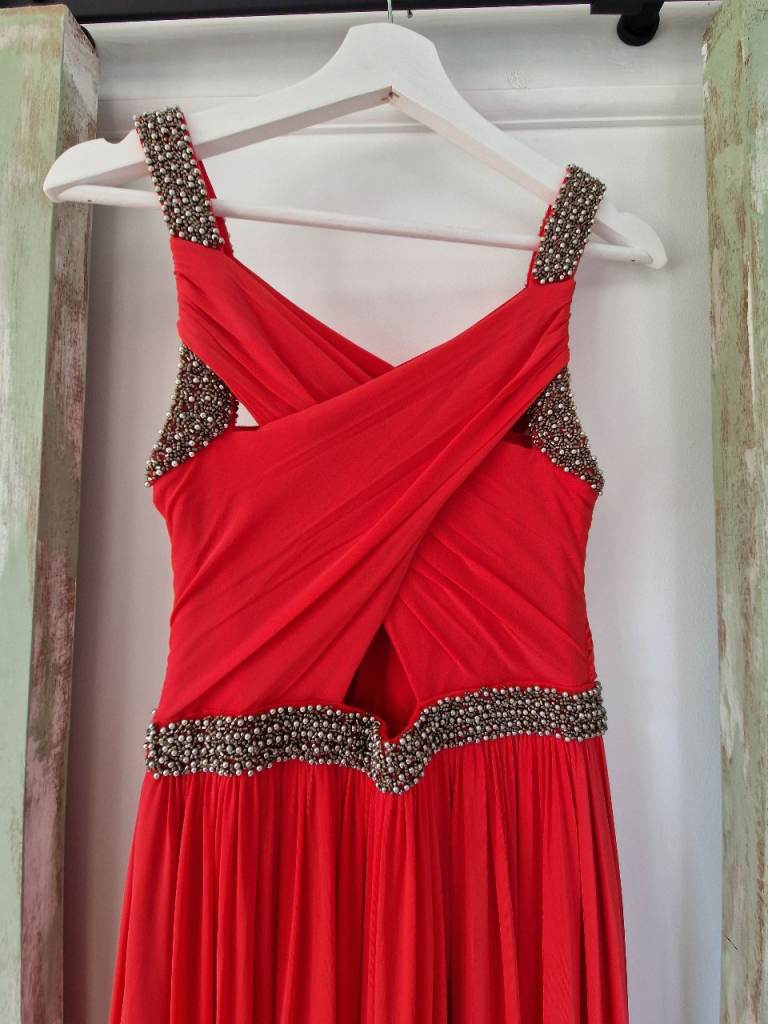 The detailing in the bejewelking, the cross over top and reveal above the waist on the back are all adding to this special gown
