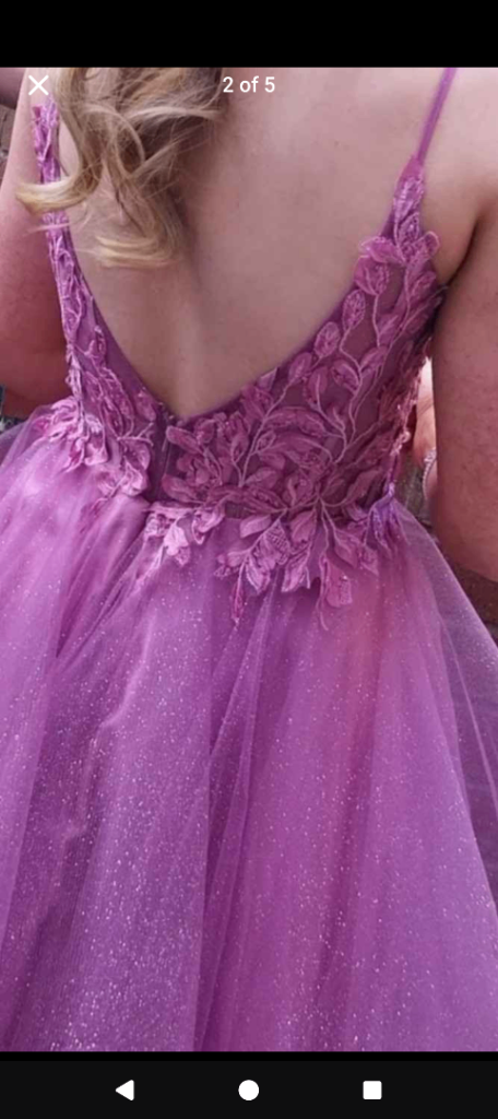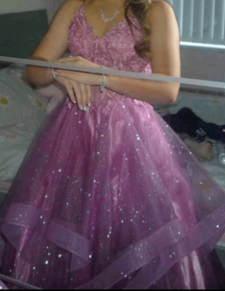 The full, layered skirt has a shimmery/ glitter finish, perfect for prom night..