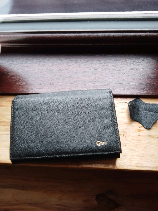 NEW BLACK LEATHER PURSE Gran printed on