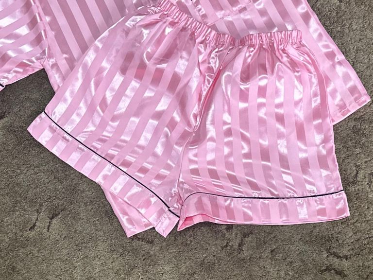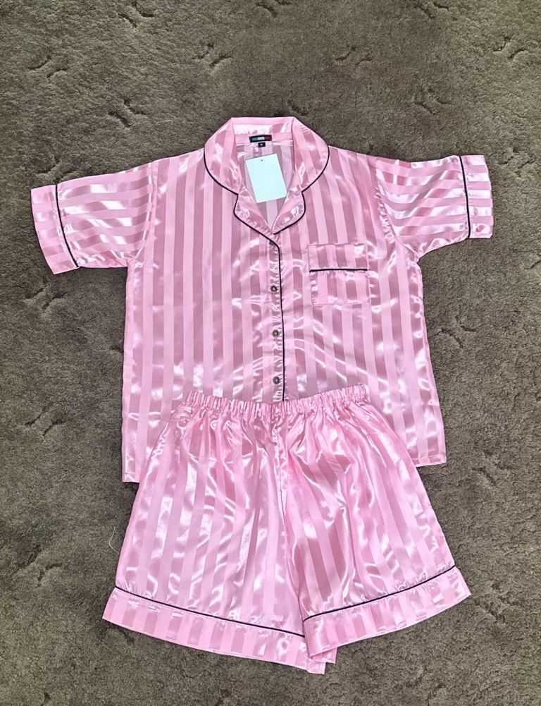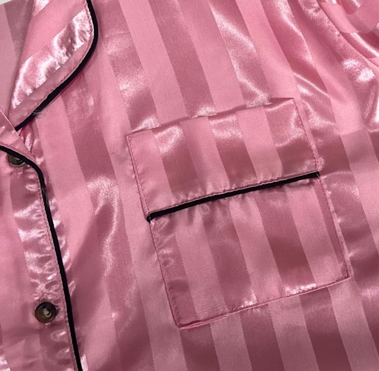 A soft, cute, and cosy pink striped PJ set featuring piping detail on both the top and shorts, giving it a neat, polished finish. Perfect for comfortable nights and relaxed mornings, with a lightweight and breathable feel.