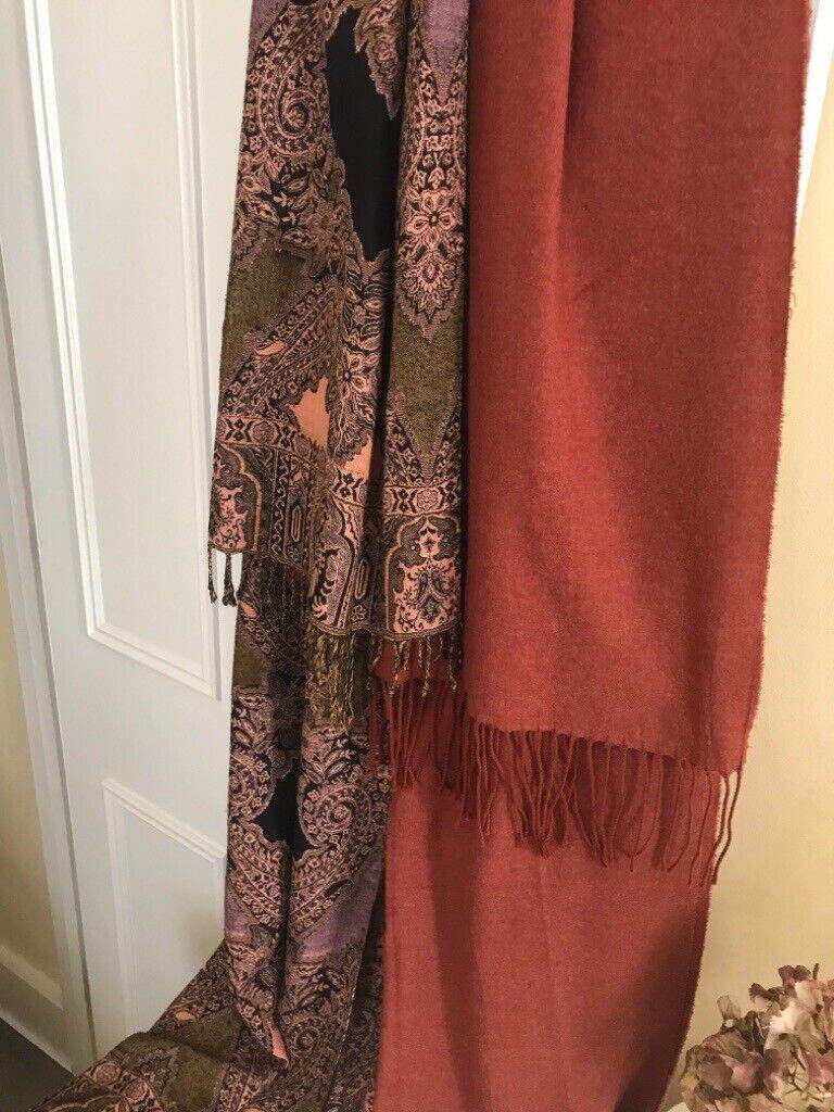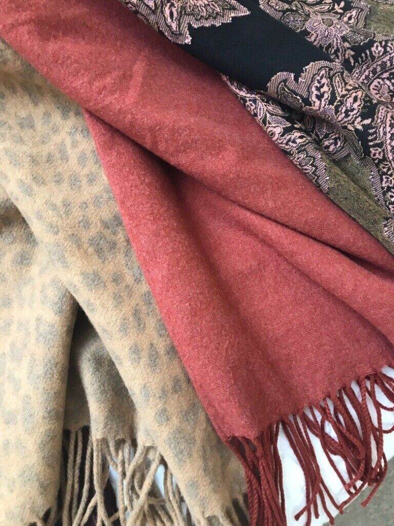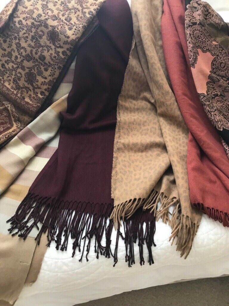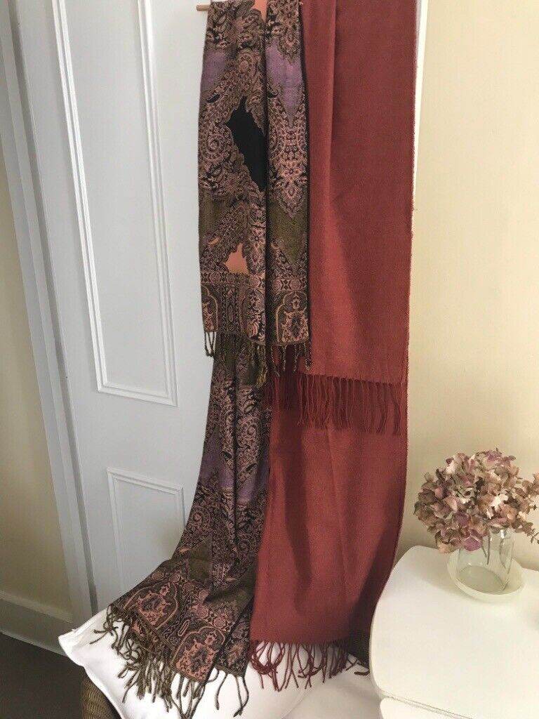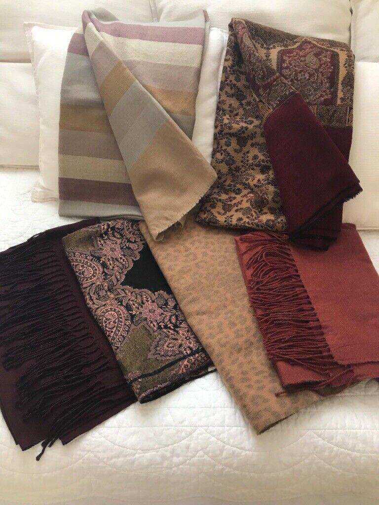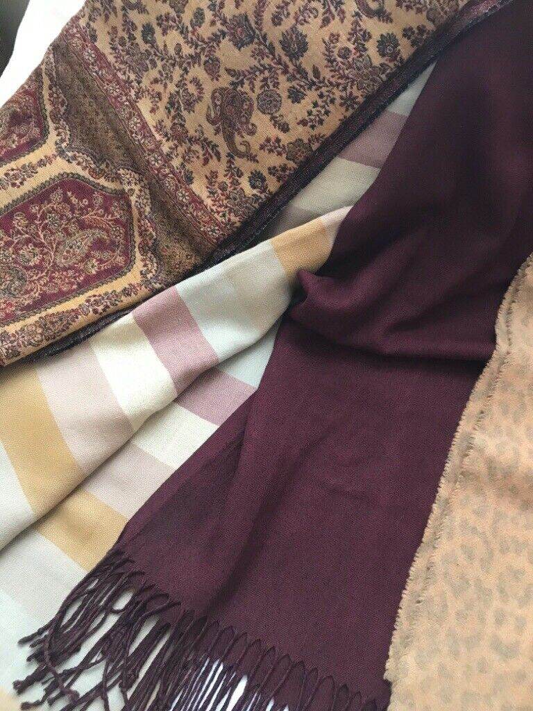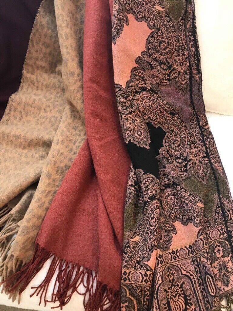 NB- Three of the original scarves/ throws ( lge shawl & neutral striped throw and pashmina)