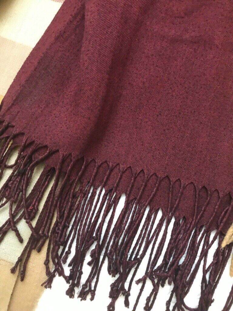 2/. Large deep berry- coloured scarf/ shawl fringed £ 12