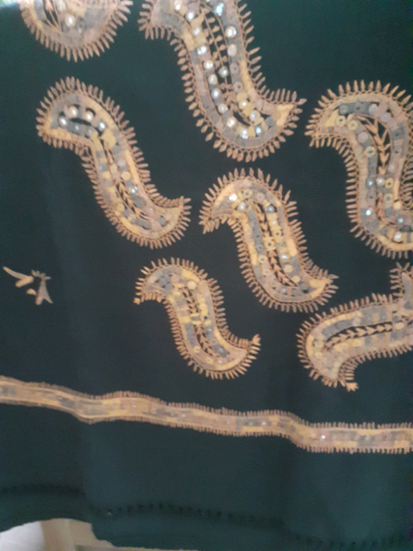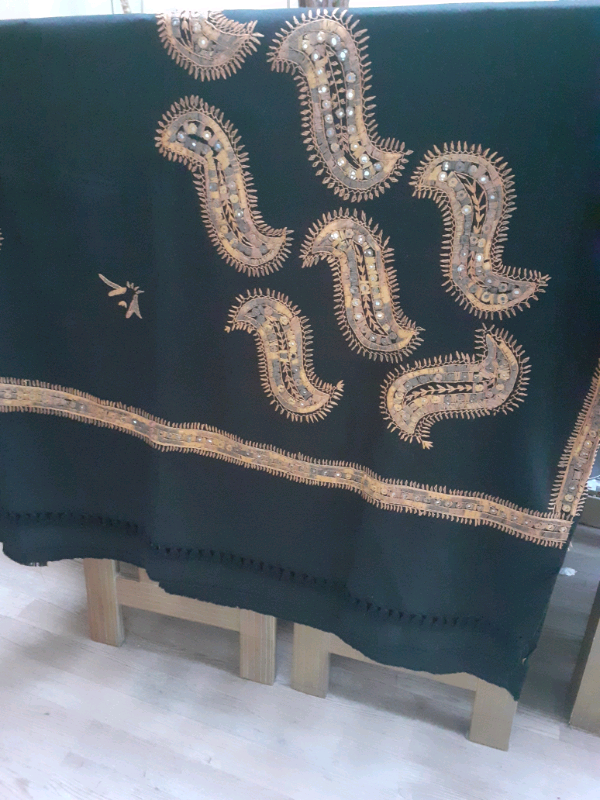 A beautiful large black shawl/charder with paisley embroidery.