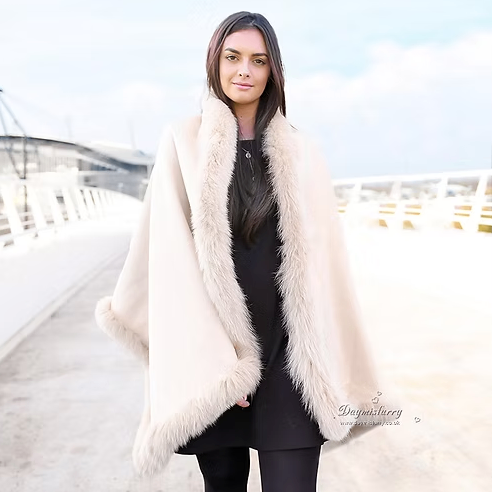 I am selling this preloved cape as I am downsizing on my winter wardrobe. The cape retails for £314 on Daymisfurry. It would make a stylish addition to your wardrobe and is very warm on its own and drapes perfectly. You can wear it as a scarf with a coat or on its own over your clothing as a shawl/cape. The colour is a rose/taupe colour.