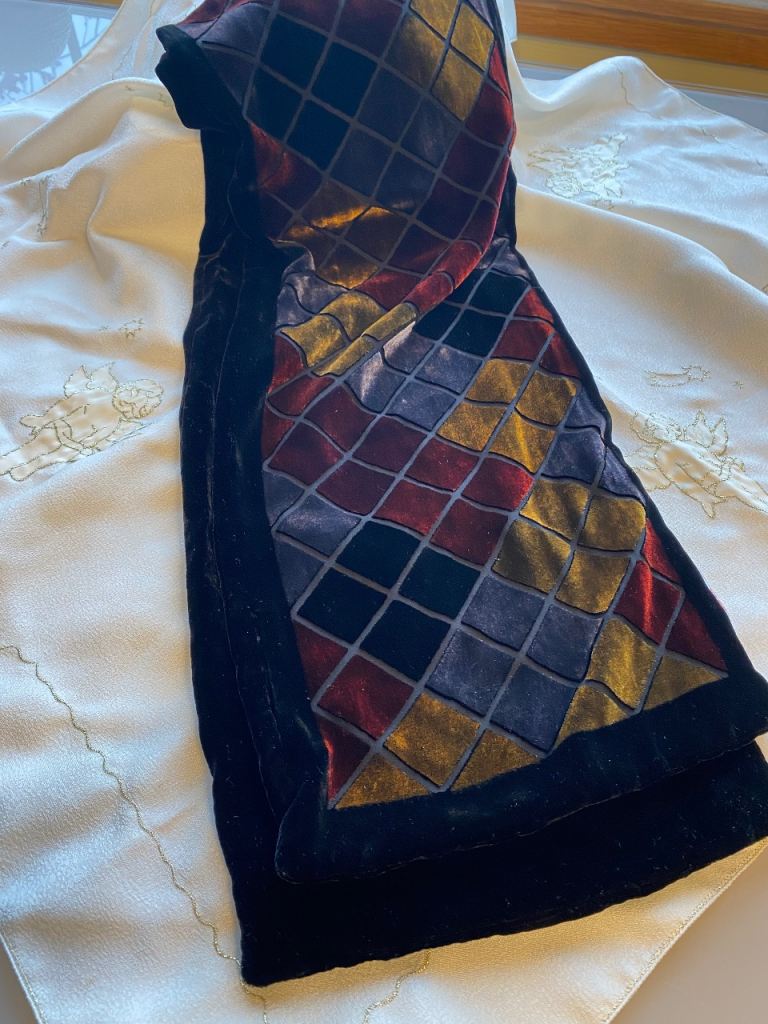 Bought from John Lewis, unwanted gift. Immaculate condition, feels light, silky, nice to touch, Harlequin Style Design.