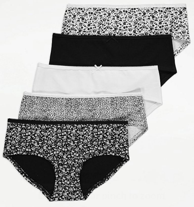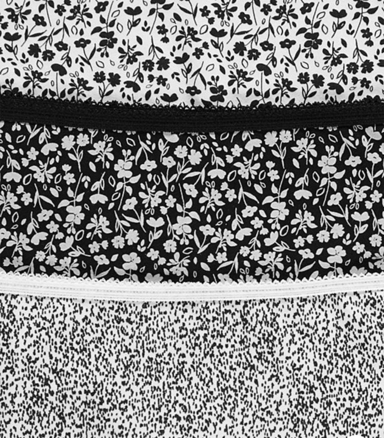 Floral Picot Trim Short Briefs 5 Pack Size:8 Colour:White/Black