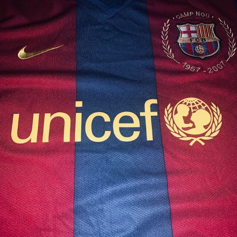 This is the Camp Nou 50th Anniversary edition (1957–2007) featuring the special commemorative crest and the iconic UNICEF sponsor.