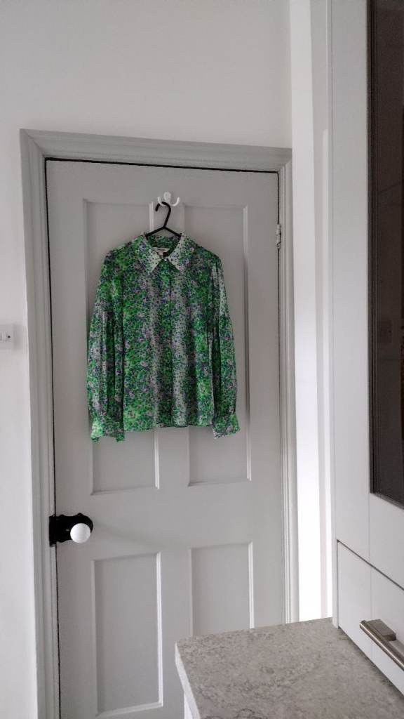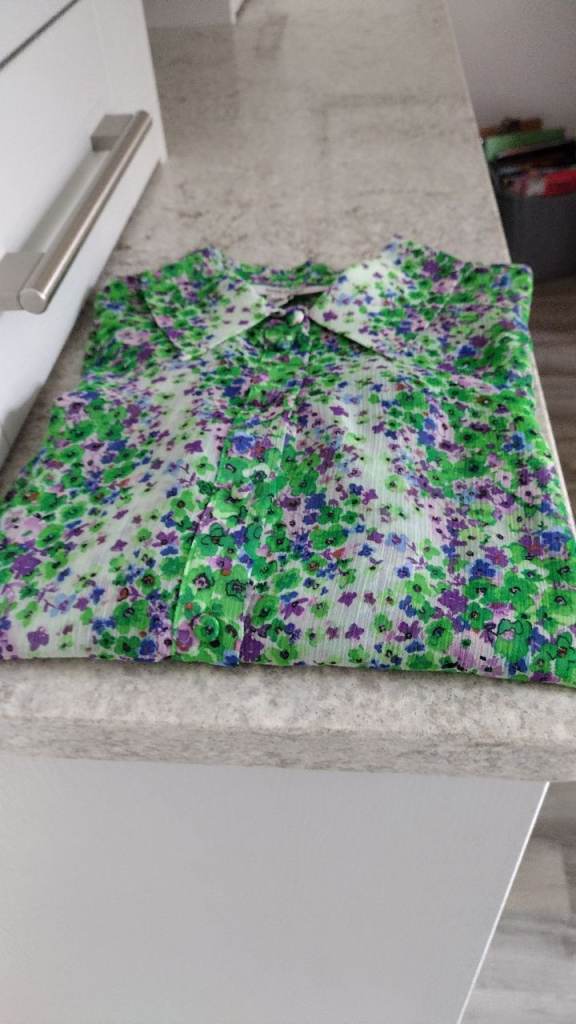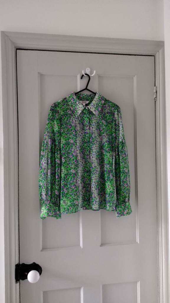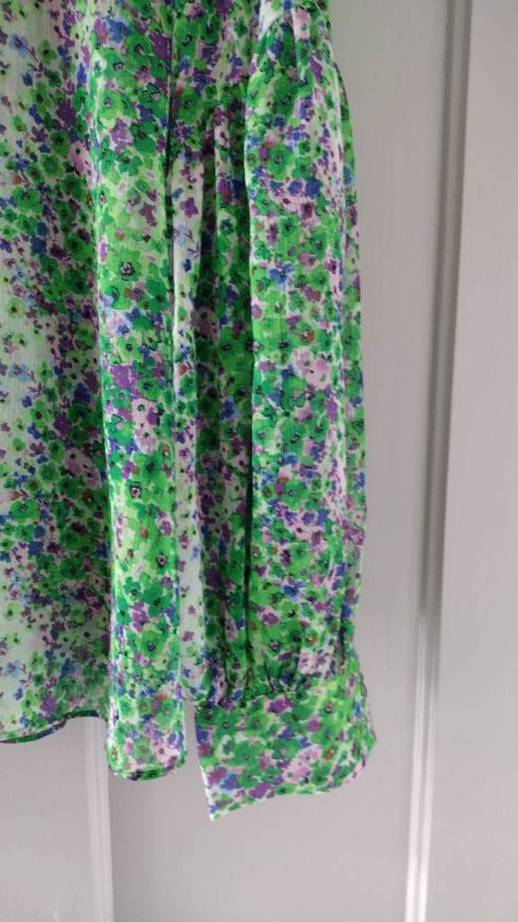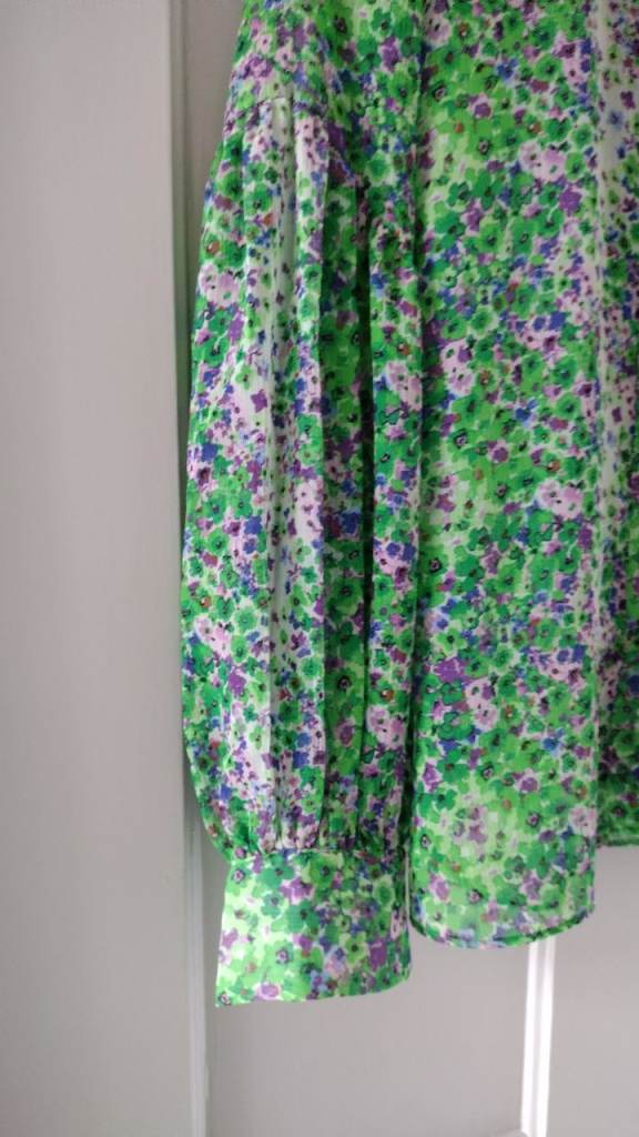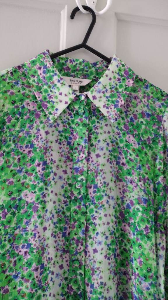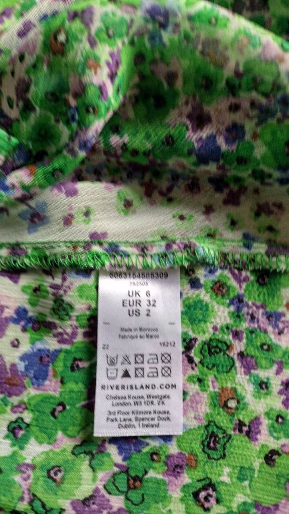 This is a green and purple floral smock-like top with full sleeves from River Island. Size 6. 100% polyester. Excellent condition.