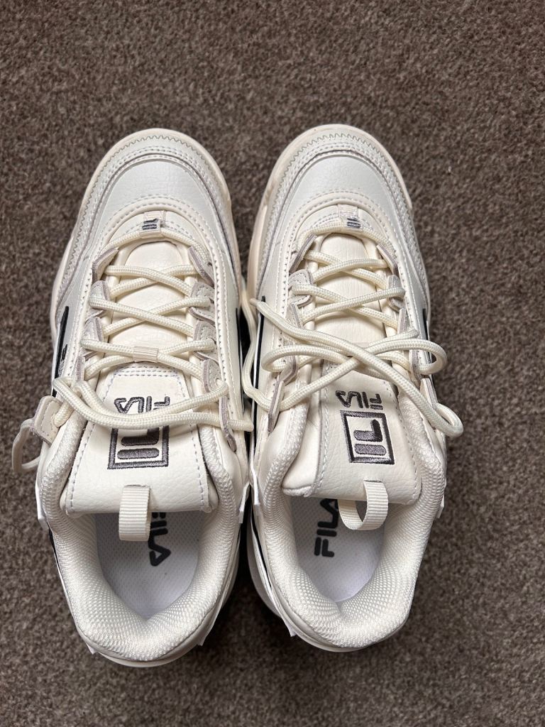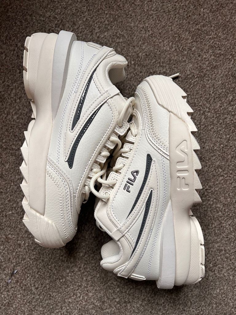 Selling my Fila Disruptor trainers in the White/Toast colourway, size UK 5. They’ve literally never touched the outside world — tried on once, that’s it.