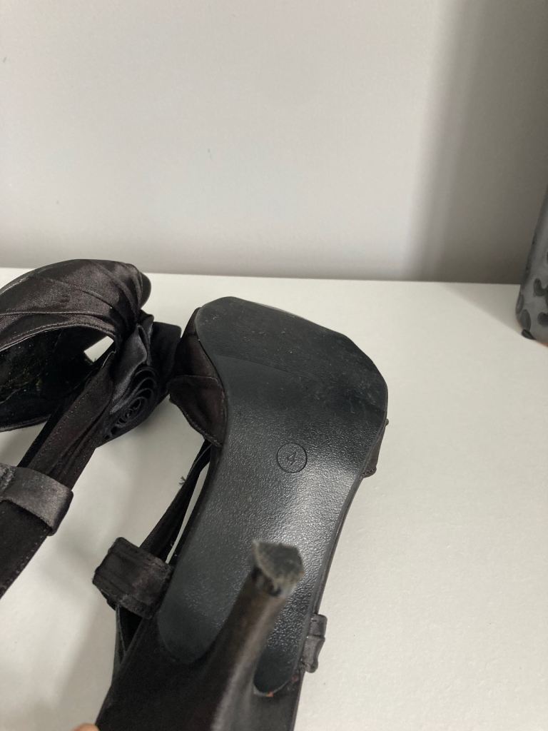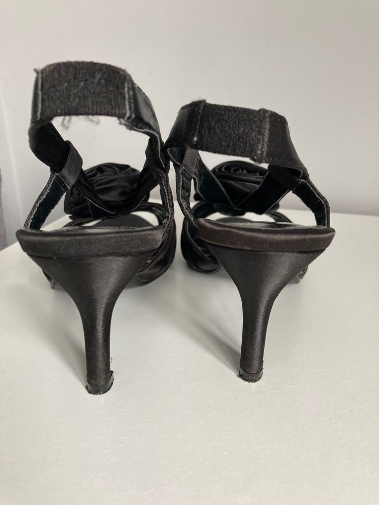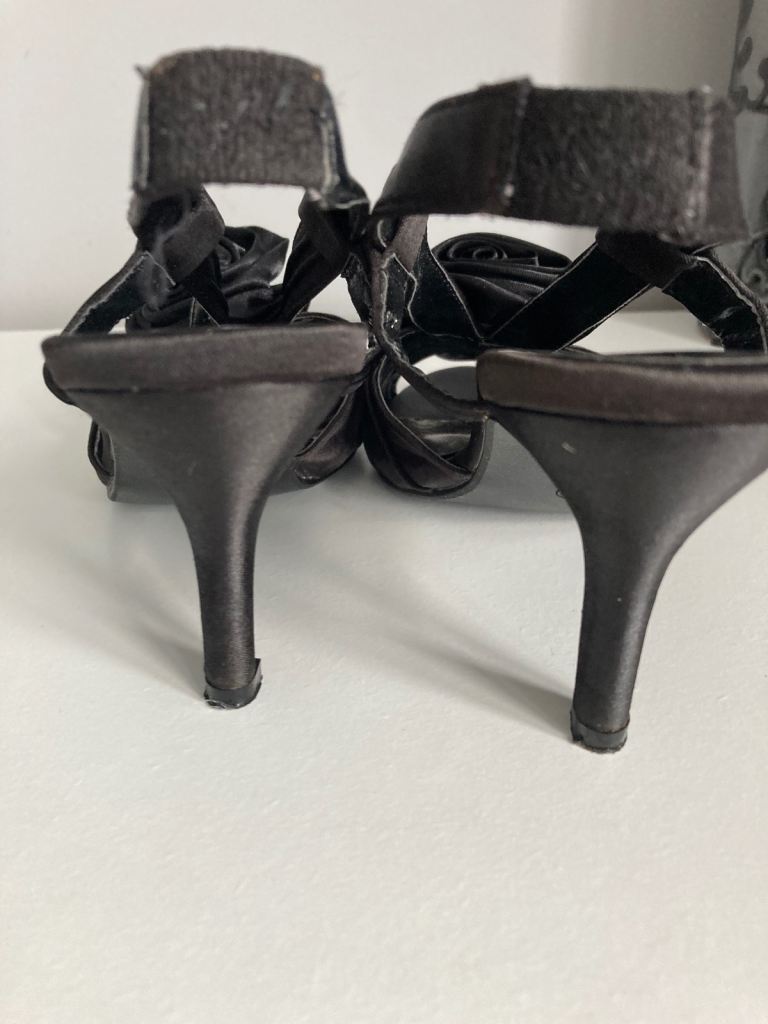 lovely evening black satin sandals.size 4.