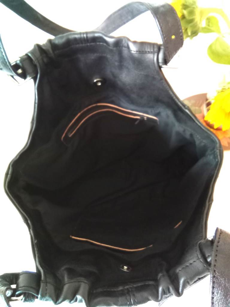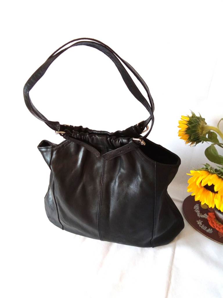 Large stylish black soft leather handbag / shoulder bag.