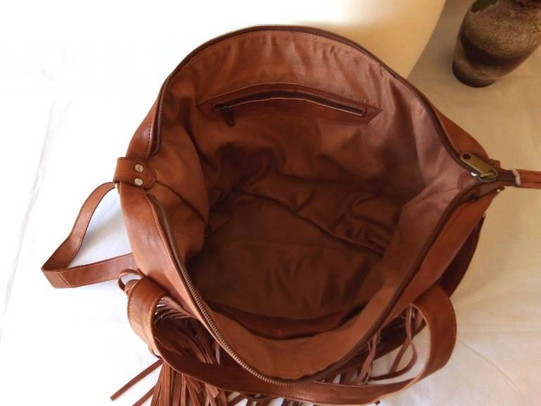 Decorative leather tassels on front.