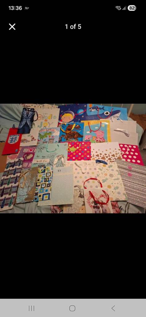 Pick up from Hartley, Plymouth, near Golden Hind pub. New Metallic Gift Bags not opened, three in total. Probably for gifting a bottle of something nice to drink. From smoke free home. Unable to deliver. But can post for extra with proof of postage and tracked if you want that.
