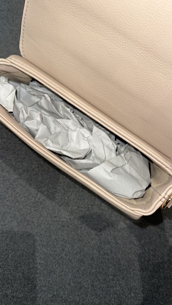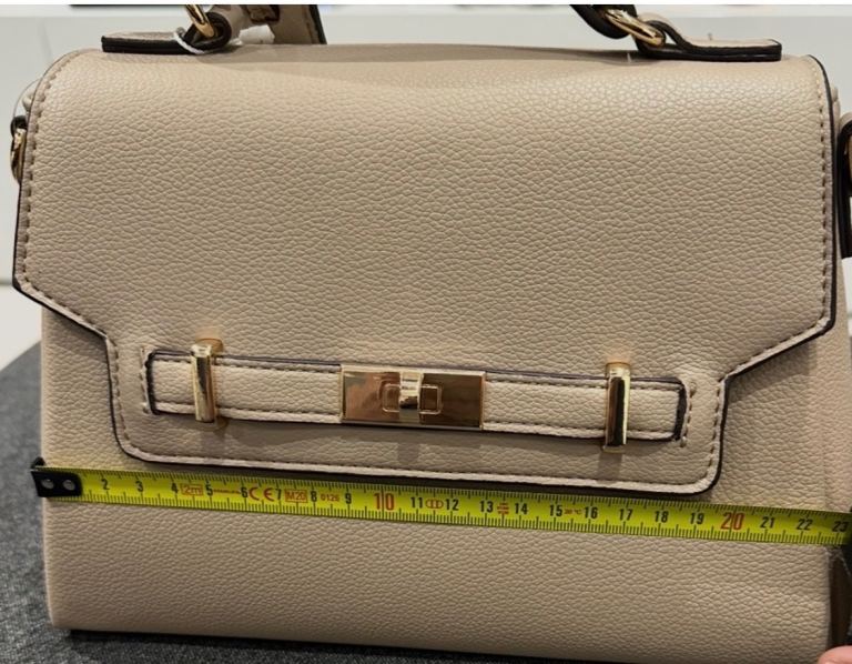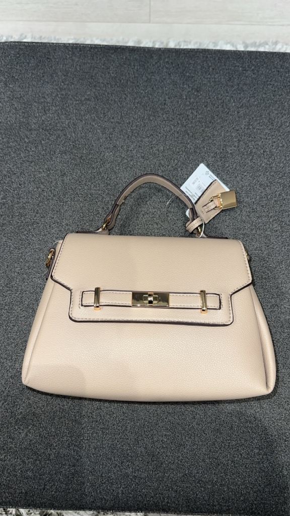 Lovely new beige handbag with a top handle and gold coloured fastening.
