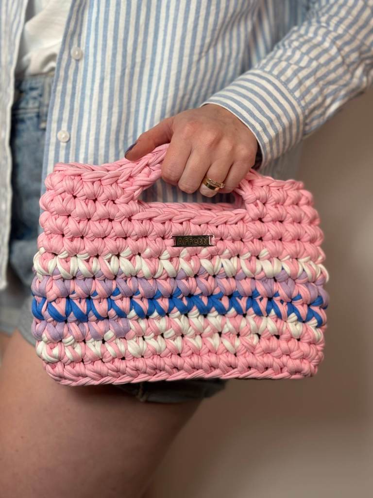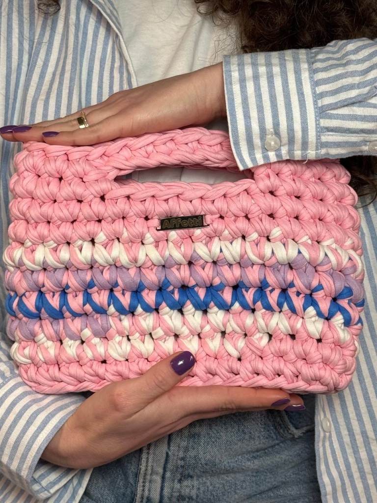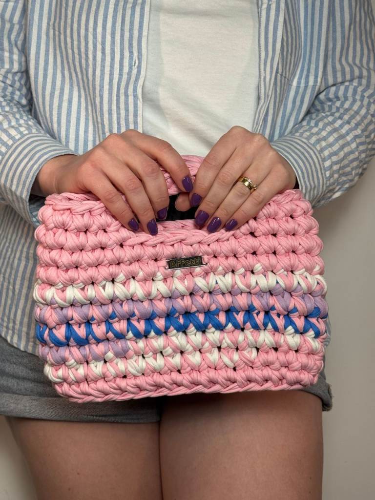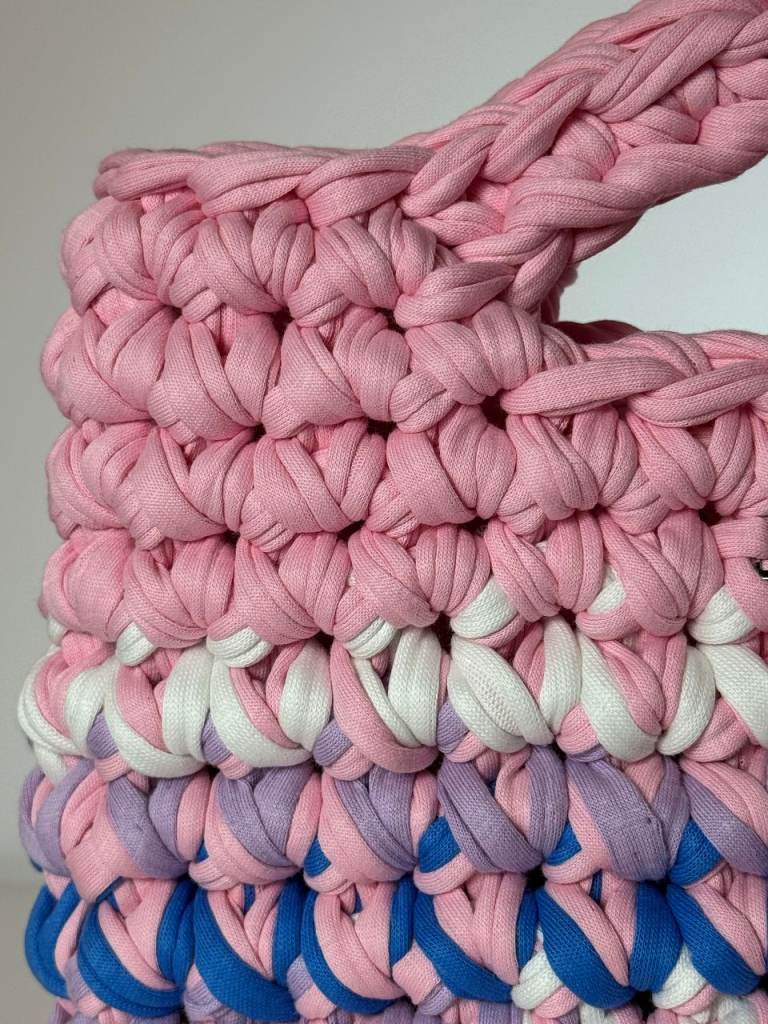 Pink Crochet Tote Bag | Handmade Everyday Purse | Chunky Recycled Cotton Handbag