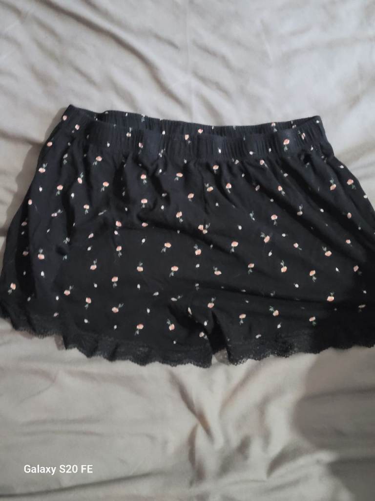 🌷 USED Primark Black Floral Shorts Lace Trim Pajama Loungewear S | Hole Present | Open to Offers!