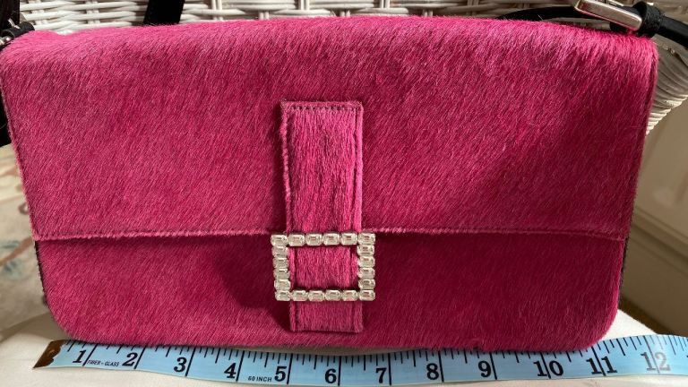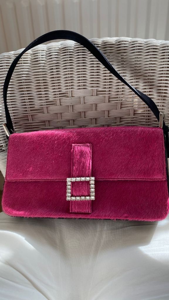 Bright pink ladies , very elegant evening shoulder bag with beautiful sparkling buckle.