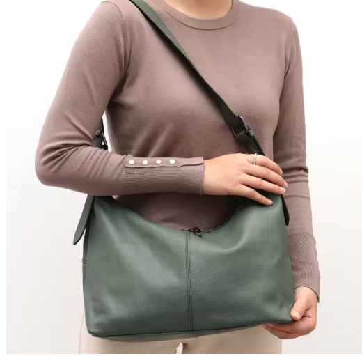 This soft genuine cow leather shoulder bag offers a versatile, casual style. Crafted in Guangdong, China, the bag features a classic hobo shape with a zipper closure, a single adjustable strap, and practical interior pockets for organization. Its understated, solid design makes it an easy accessory for daily use. More details https://linktr.ee/julfiker1