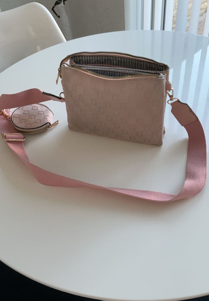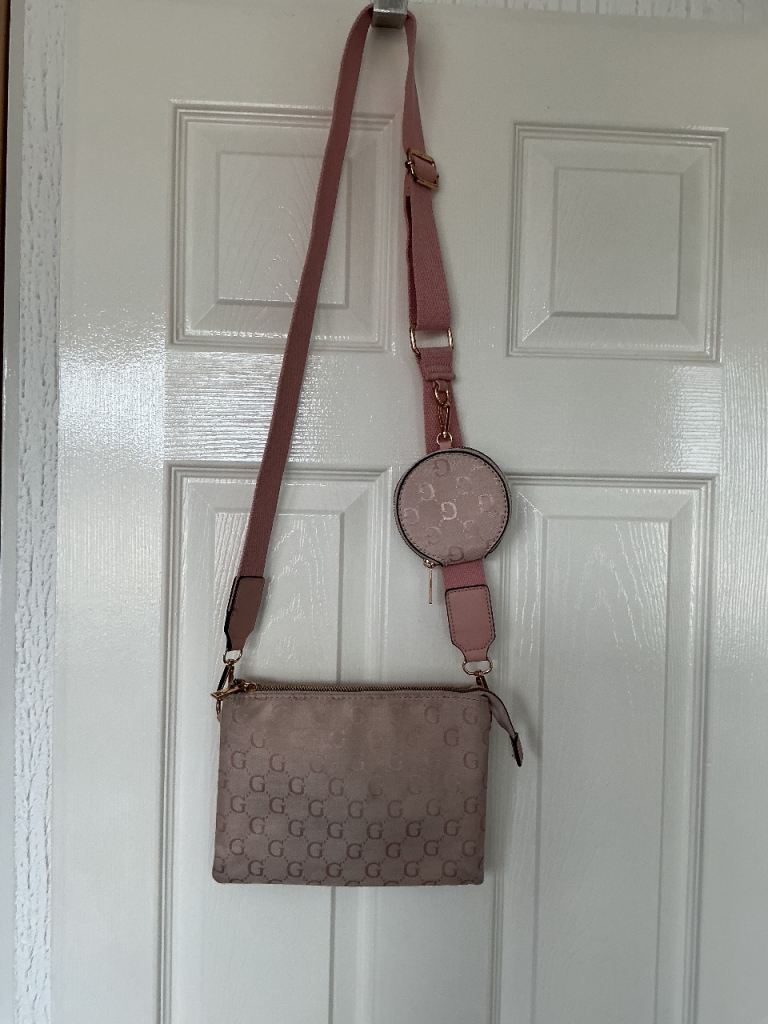 Pink hand or shoulder bag with purse £4.00.